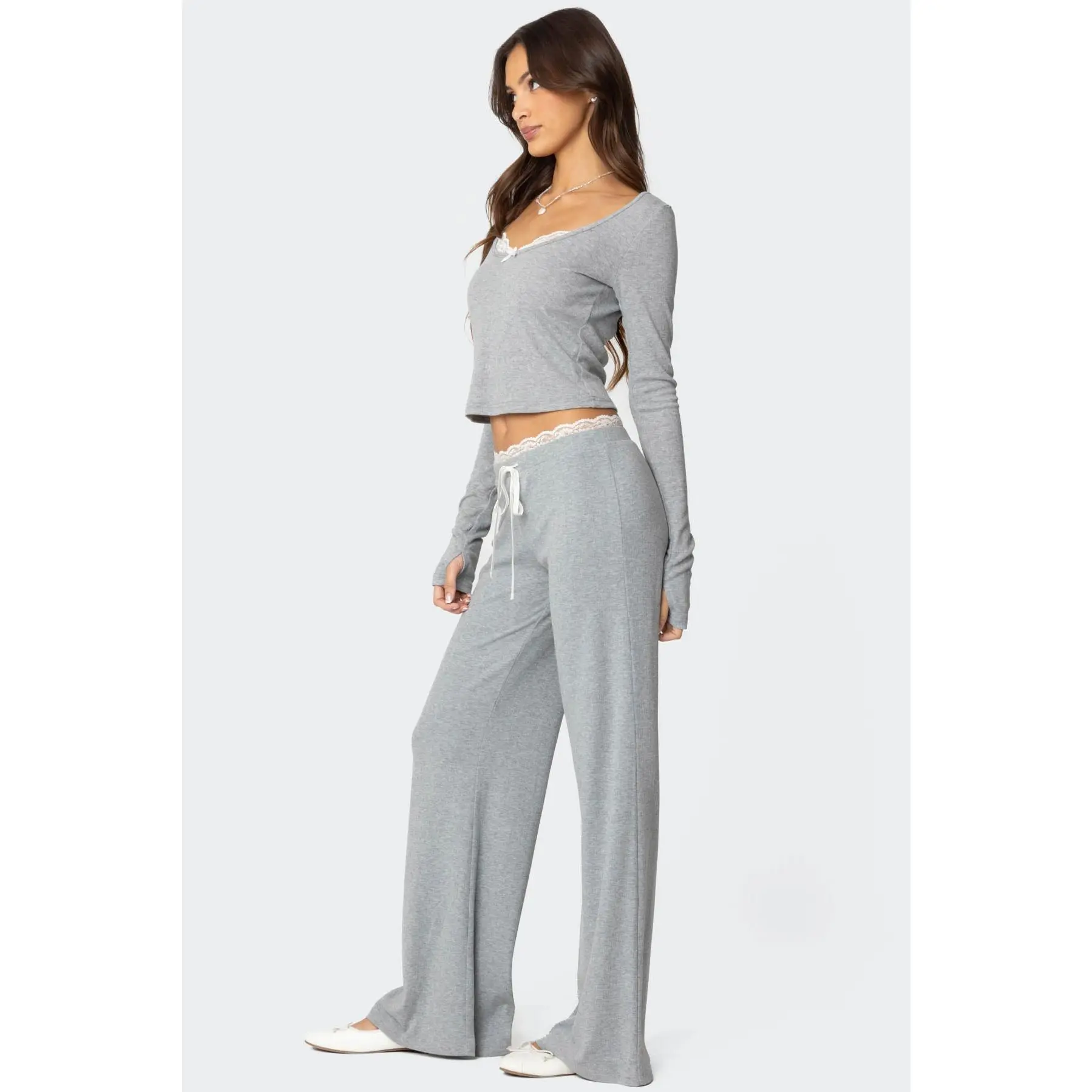 Peekaboo lace long pants and top  #edikted #ediktedpants #ediktedtop #loungewear #coquette