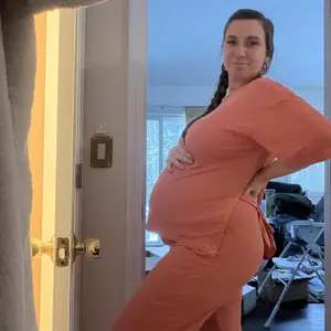 Got a size L and love the fit. I’m due next month and it still has plenty of room without being too tight—fits perfectly! 😊