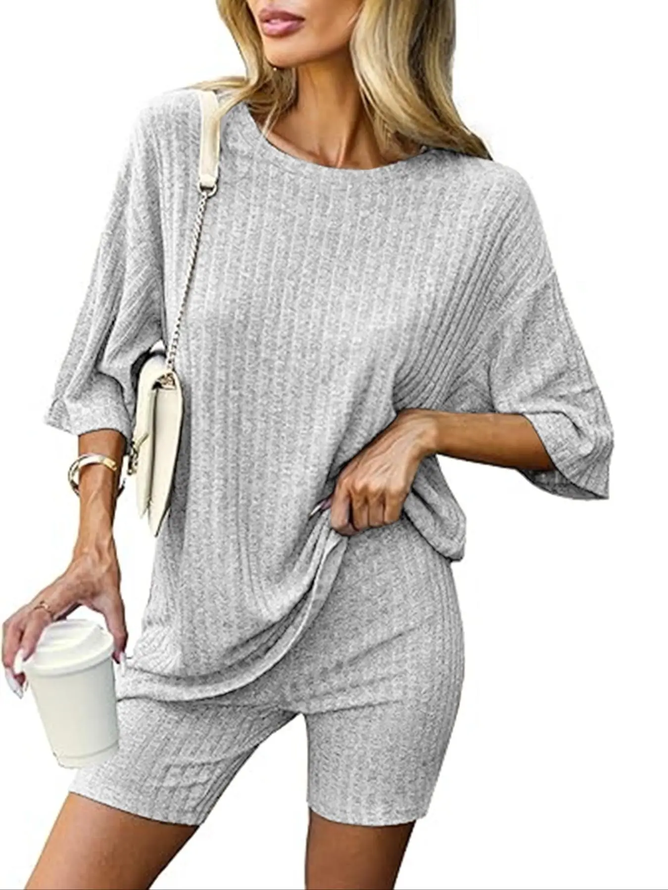 I love this grey two-piece set! The material is soft and comfy, and it fits really nicely without feeling too tight. Itās easy to dress up with some cute shoes and accessories, but also perfect for just running errands or lounging.