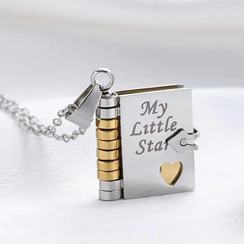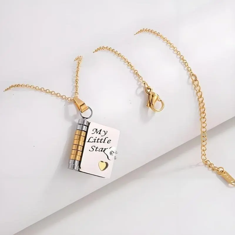 【To My Daughter Gifts】: My Little Star Book Necklace — A Timeless Gift for Your Daughter. This special book necklace features a flip-open pendant engraved with loving messages. Every time she wears it, your daughter will feel your love close to her heart, making it a beautiful symbol of the eternal bond between mother and daughter.