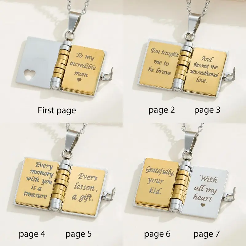 【Necklace for Daughter】:My incredible daughter book necklace — A genuine six-page flip-through jewelry book. Each page is exquisitely engraved with parents’ most heartfelt words—far more than precious jewelry, it's a wearable family heirloom that transforms every page turn into a tender conversation of love.