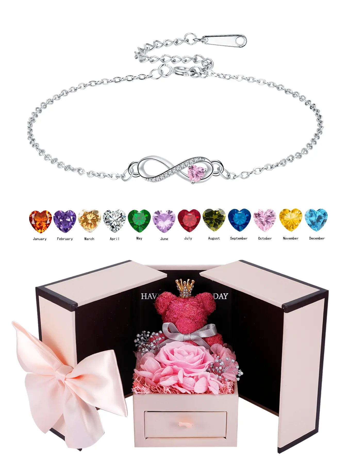 Infinity Bracelet with Birthstones & Rose Jewelry Gift Box, Trendy Fashion Accessory for Women, Perfect Anniversary Birthday Christmas Gift #uniquegiftideas #valentinesdaygiftideas #perfectgifts #couplebracelet #birthdaygiftsforwomen #bestholidaygiftsforher #bestgiftsforher #personilizedgifts #jewelrygift #christianbracelets