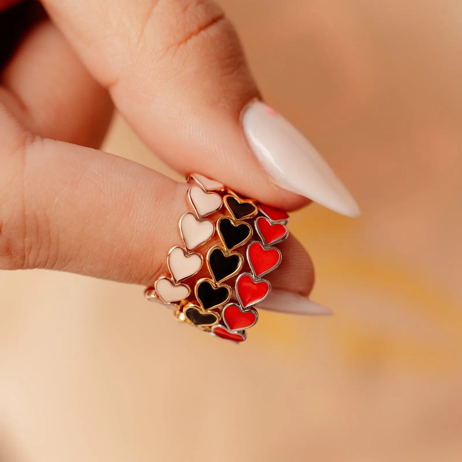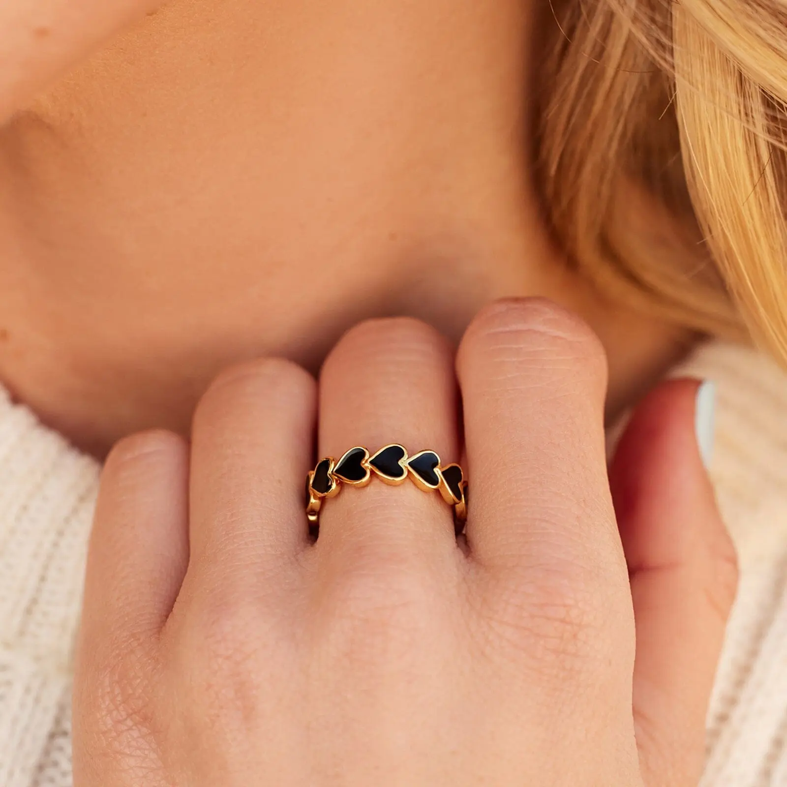 such a cute ring. delicate, looks nice on my finger, love the pink rose gold one the best. the gold/black is my 2nd fave