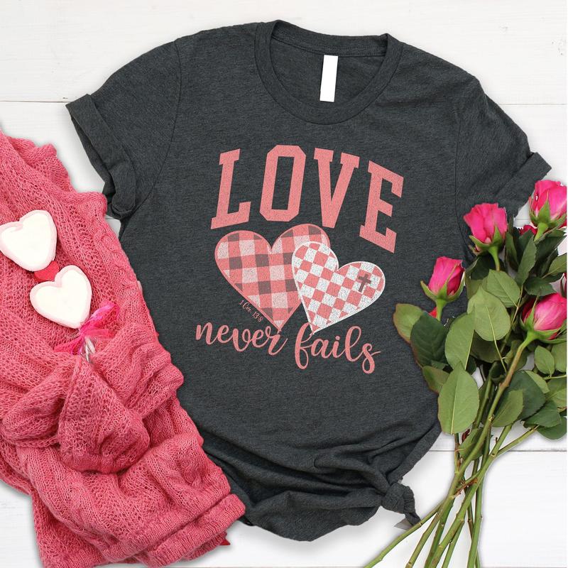 Love Never Fails Varsity TeeLove Never Fails Varsity Tee