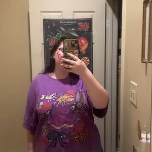 Super cute design, the shirt itself was larger and the purple was darker than expected. I’d recommend sizing down and making sure you’re okay with a darker color!