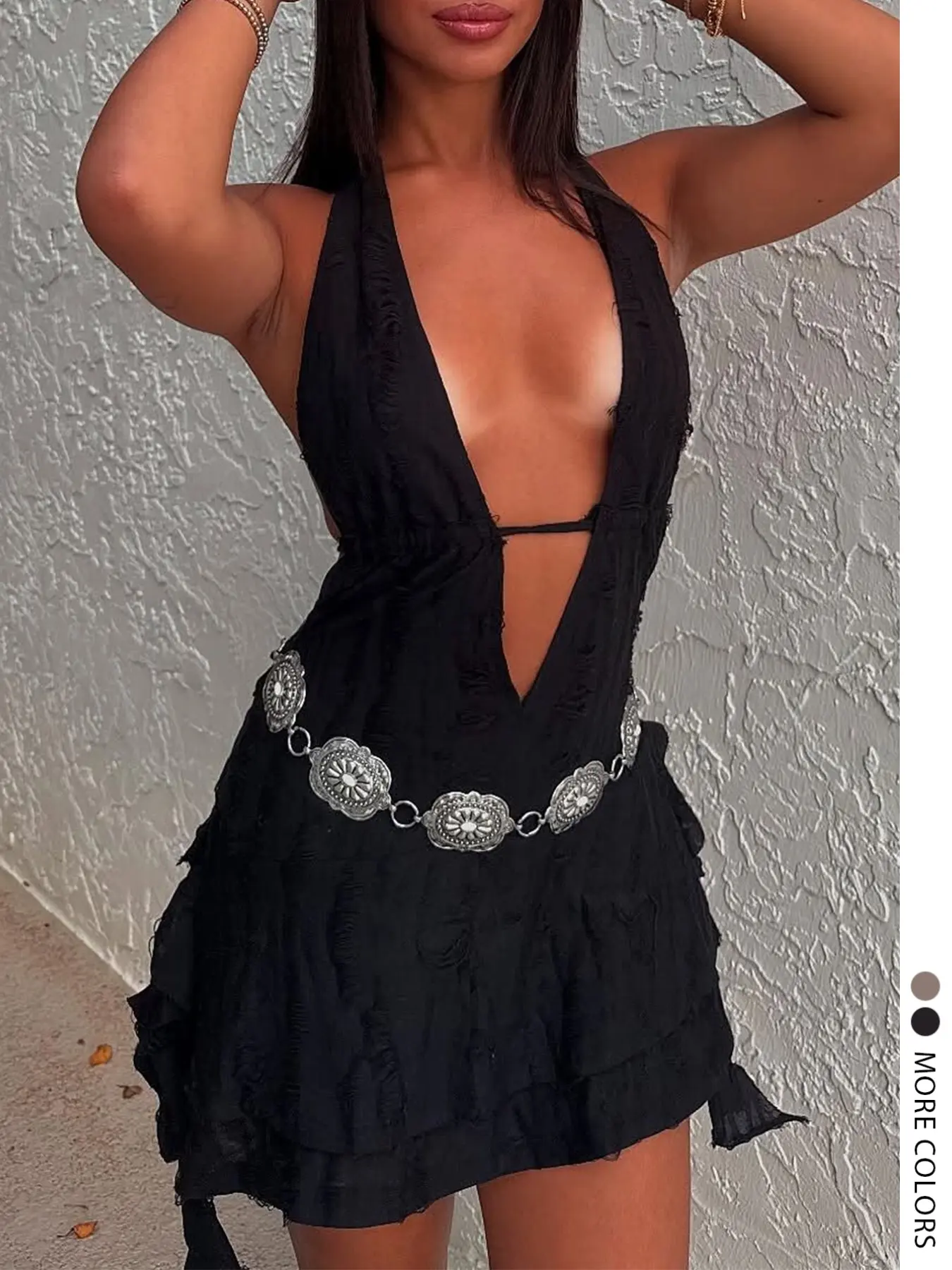 Lovely Wholesale Women’s Summer Vacation Solid Color Ripped Design Asymmetrical Hem Tie Backless Sexy Mini Dress,Sexy Style,Perfect for Vacations #fyp #tiktokshop #ootd #tiktokmademebuyit #halterdress