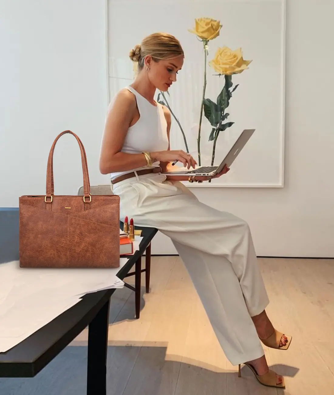 【LOVEVOOK Women's Laptop Bag】: This bag blends vintage charm with modern fashion, featuring clean lines and solid colors for a classic look. It's perfect for showcasing your elegant style wherever you go.