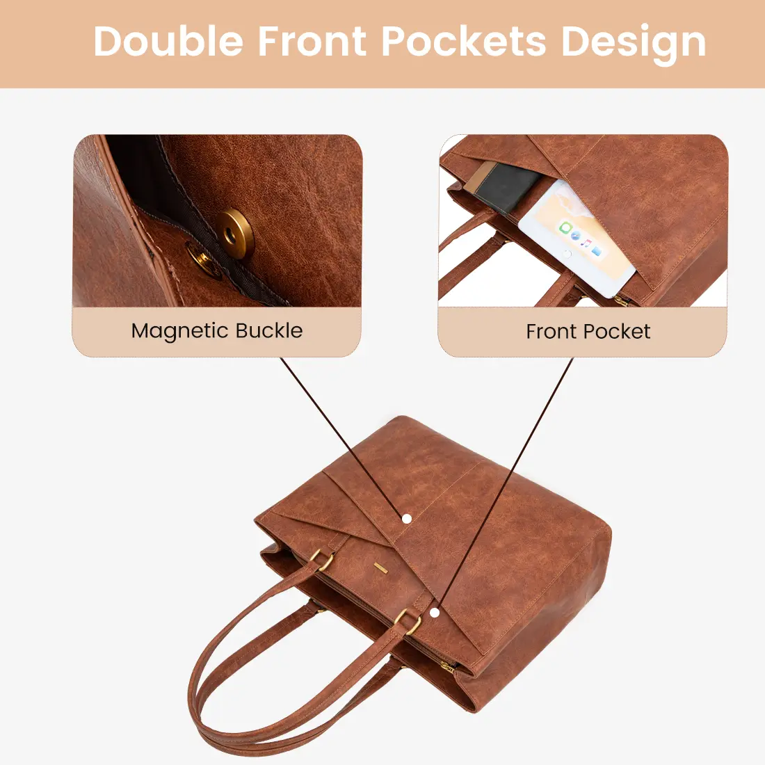 【Durable & Practical】: Made from high-quality, water-resistant, and scratch-resistant PU leather with a polyester lining, this work tote is built to last. Metal feet protect it from damage.