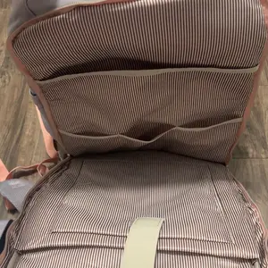 Features a luggage strap on the back, allowing it to be securely fastened to the handle of a rolling suitcase, freeing up your hands and back.