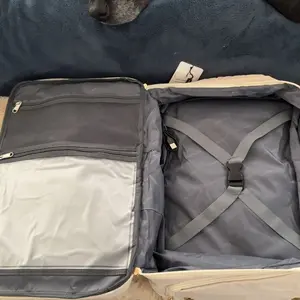 I just received my bag and LOVE it! It’s super durable and well made, not cheap at all! It has so many pockets and it expands 2 inches. We never check luggage, we just do carry on’s, so between this and my rolling carryon I can easily pack for a week and be able to take what I want!