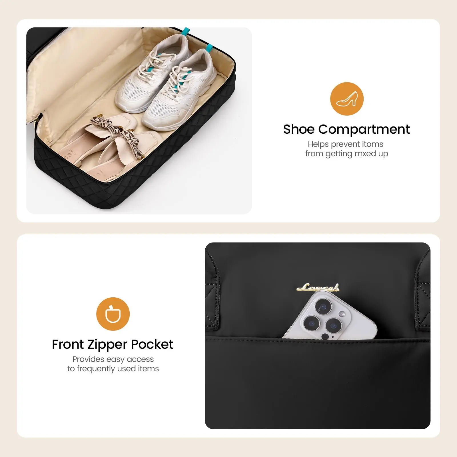 Must have bag! Very good quality, stable and holds a lot of items. Bottom shoe compartment is roomy.