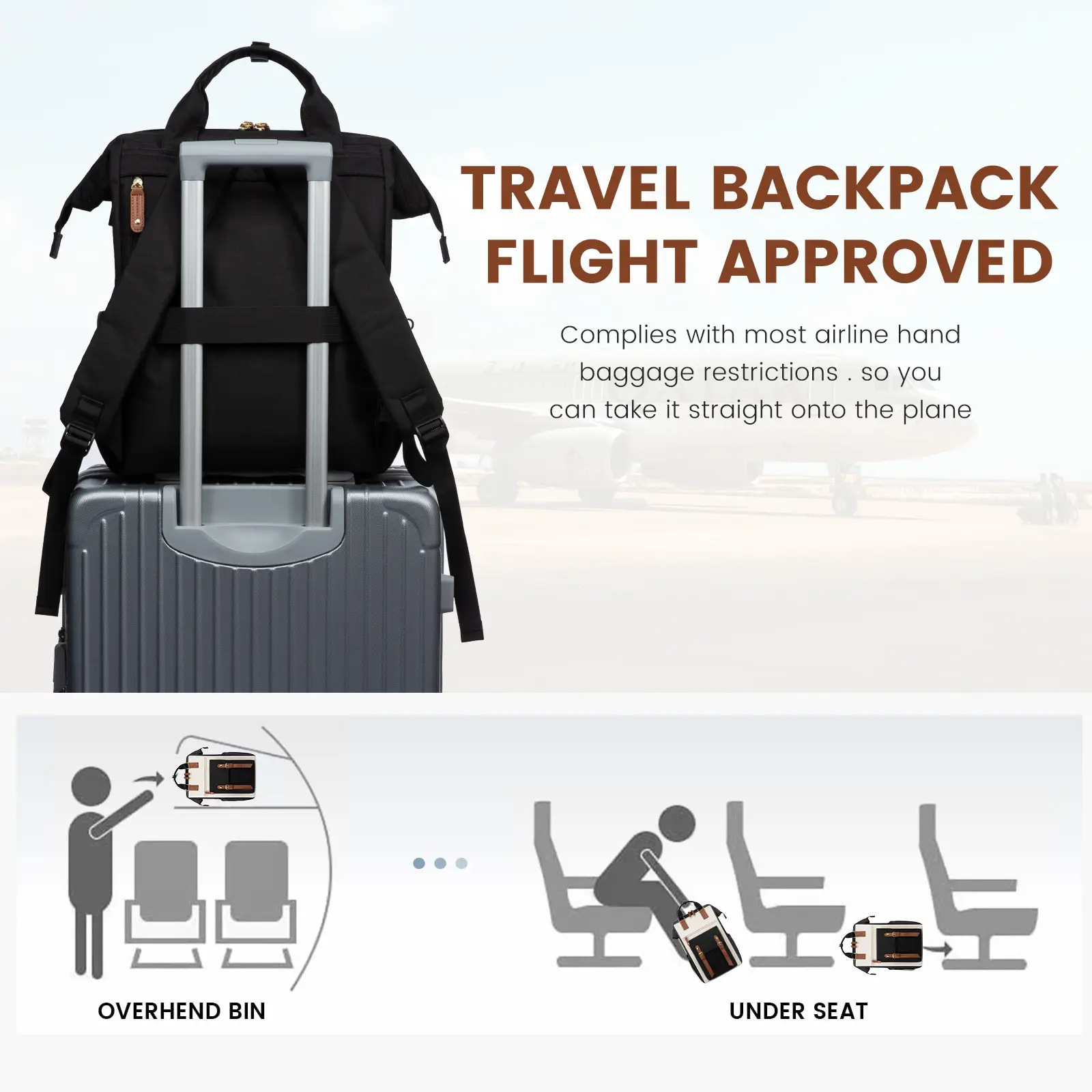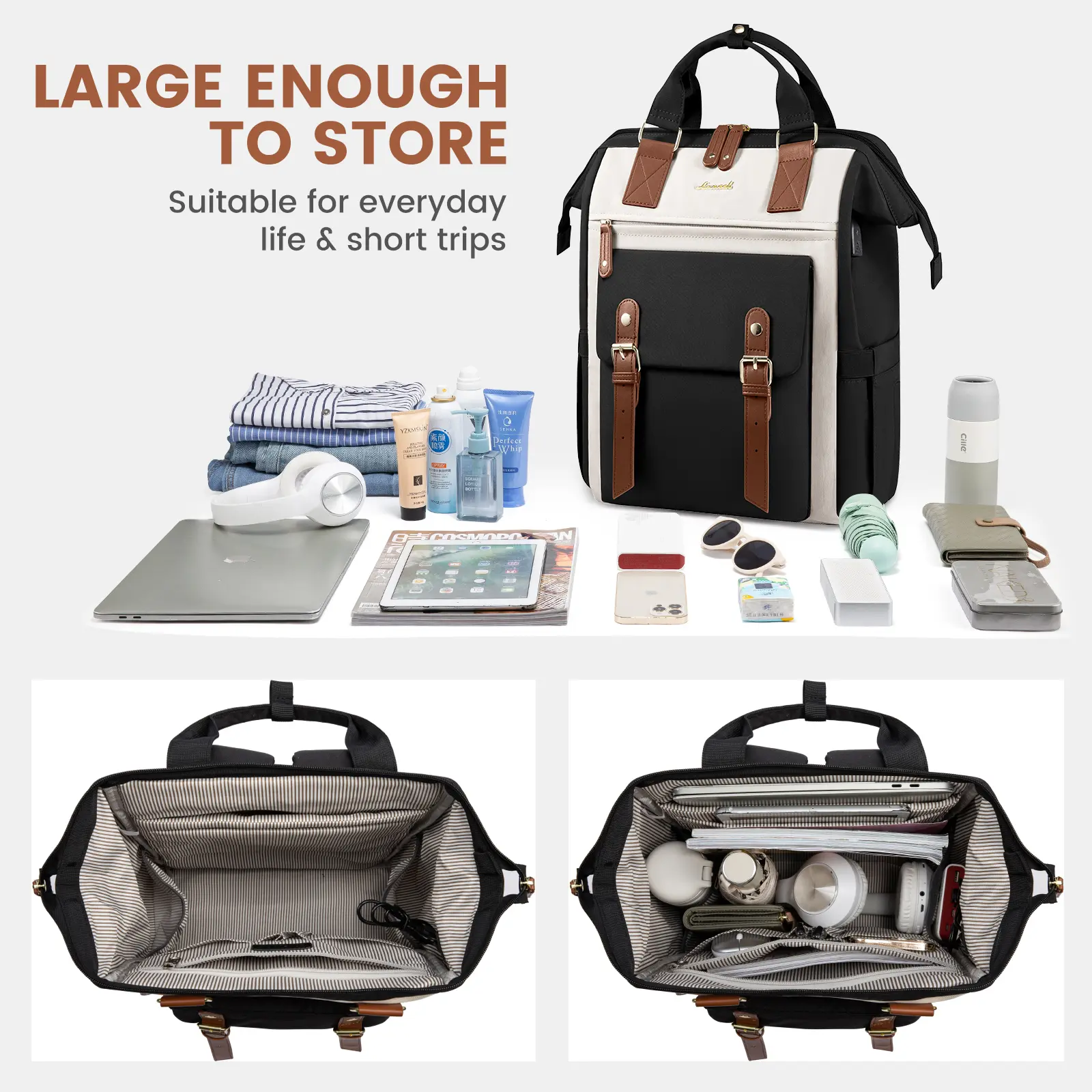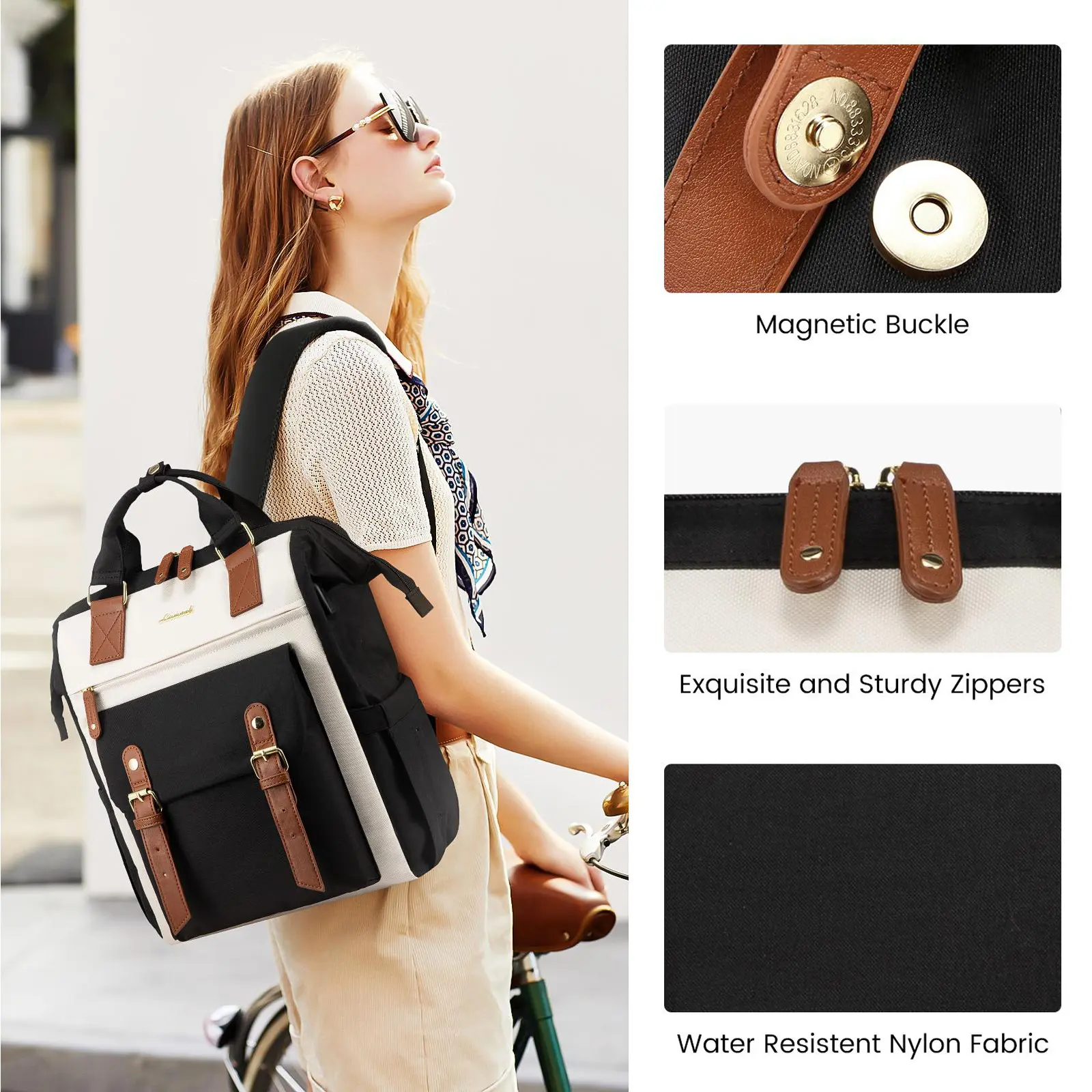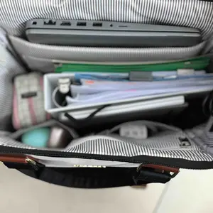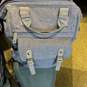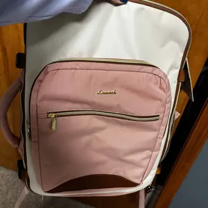 Love this bag. It’s super cute multifunctional you can use it for multiple things- day to go to the city, long day of commuting or for work bringing stuff that you put in your bag and supplies, an overnight trip. Also comes with a charger and has multiple compartments in the front, back, and sides.