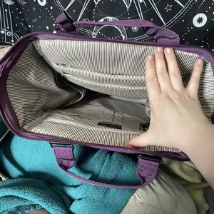 Ive Been wanting a work bag with multiple pockets & I found it!! I got drizzled on.. heres the aftermath& im safe for a good rain! the inside is very spacious! Youd expect it to be heavy but surprisingly its not! love the straps I’m 5’4 & suits me like any other bag. I do think i shouldve sized down