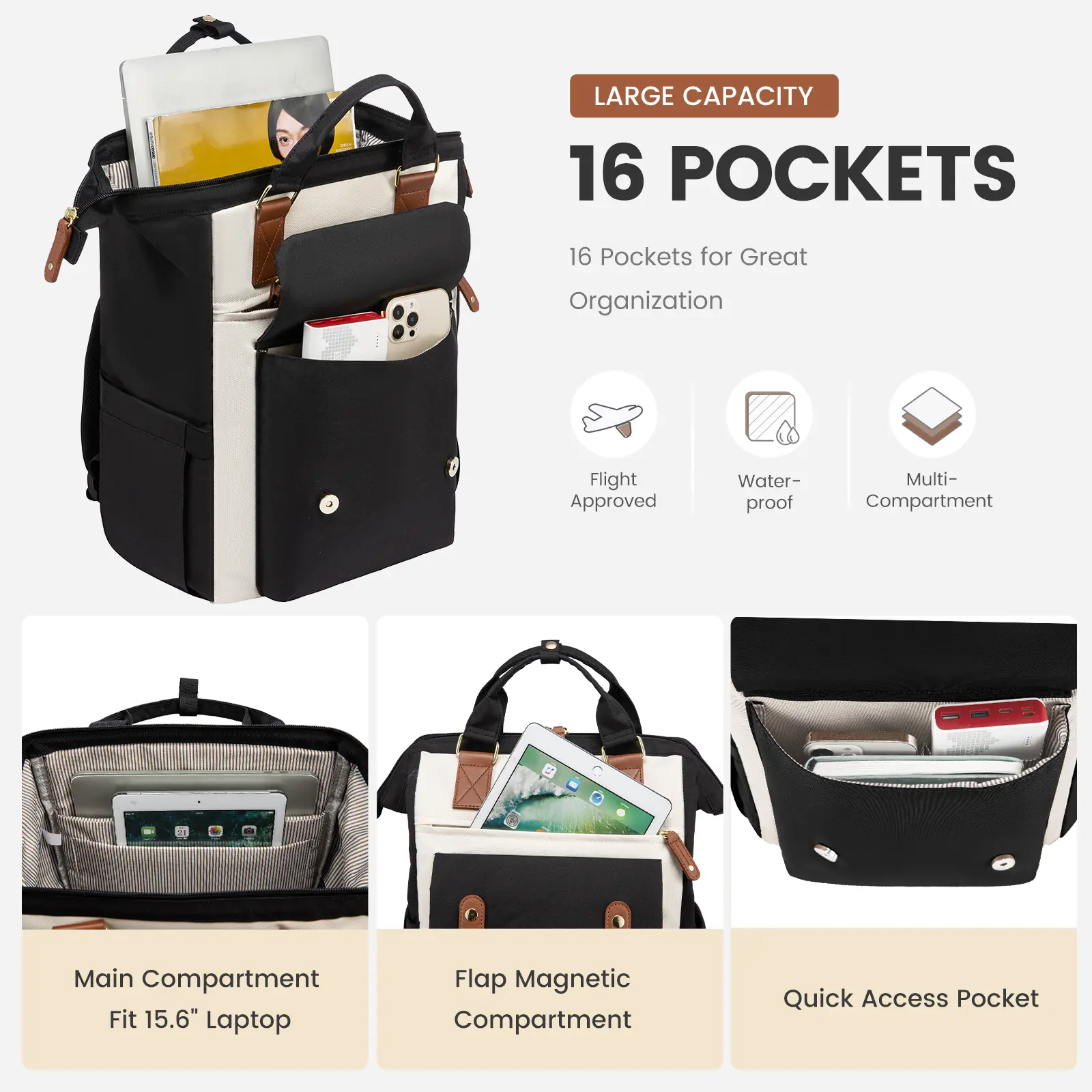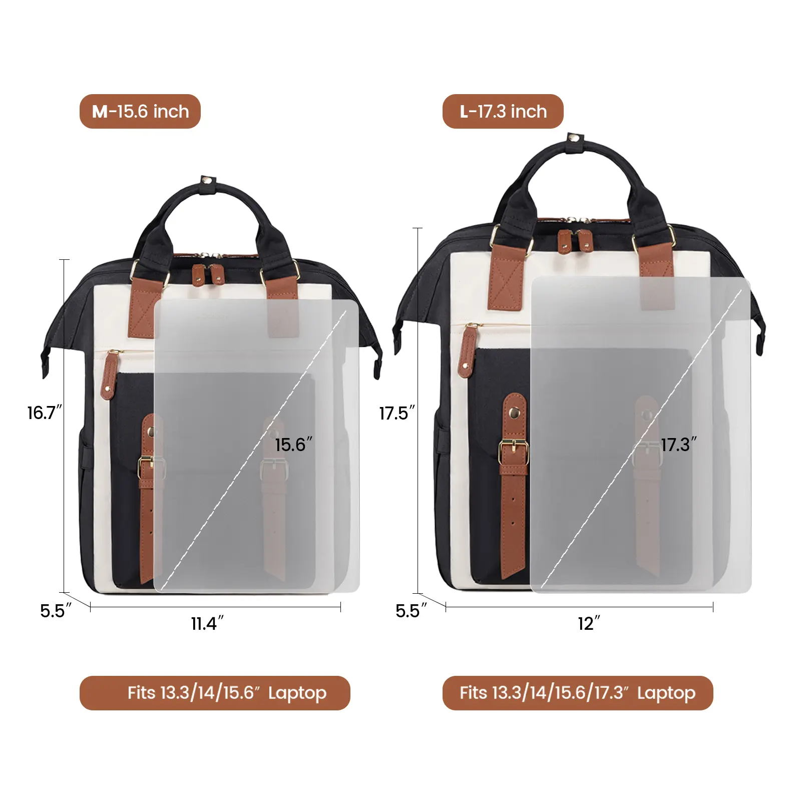 Black-Beige-Brown, 15.6" - 13"L x 5"W x 17"H