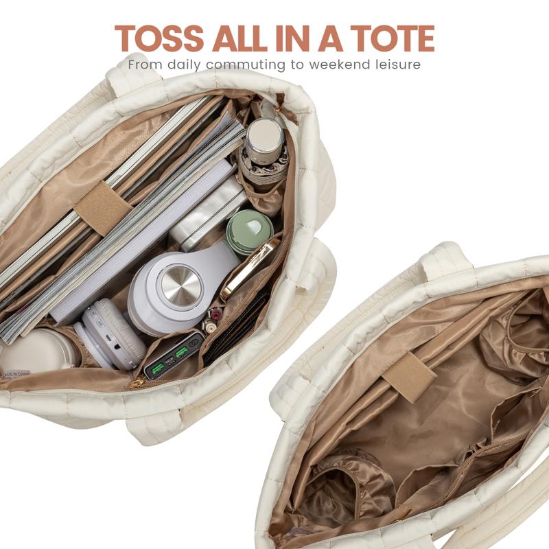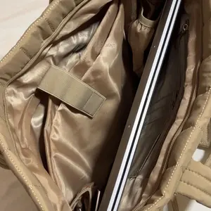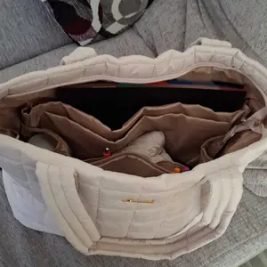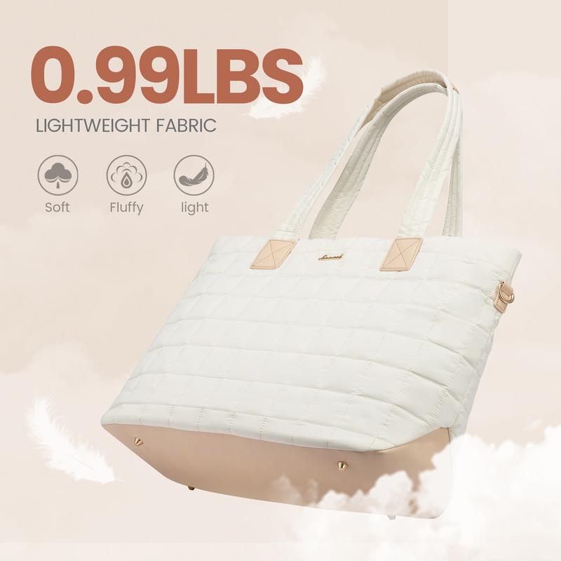 The bag is super light weigth. The fabric is so soft and the iside compartments are so convenient. I love it!!