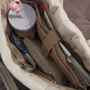 I bought this tote bag because it was advertised to hold a cup with a handle, but my 40oz Stanley cup doesn’t fit all the way since the cup holder lacks the hole, and the promotional videos on TikTok are misleading.