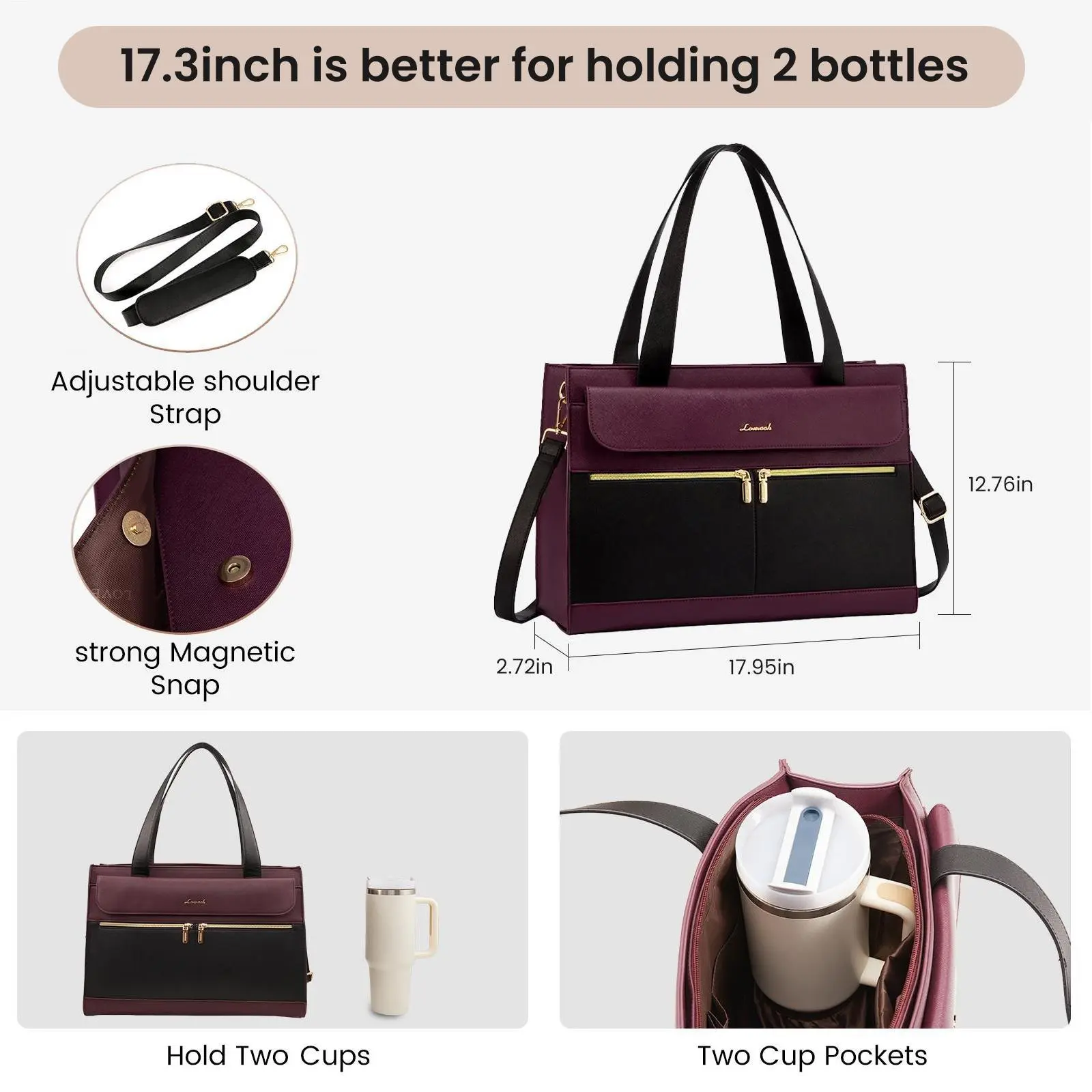 【About Size】17.3 inch is better for holding 2 water bottles and one 17.3inch laptop.