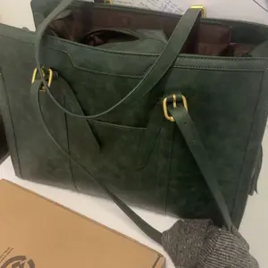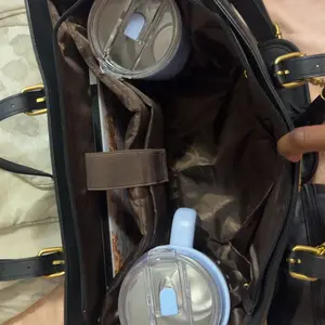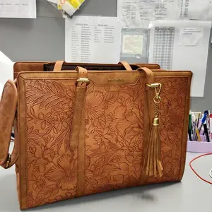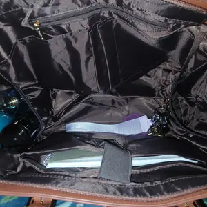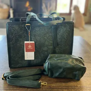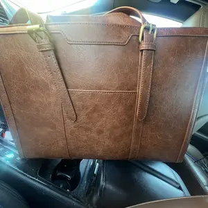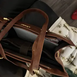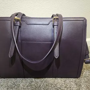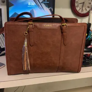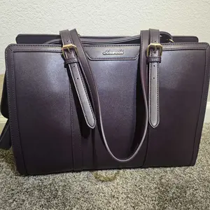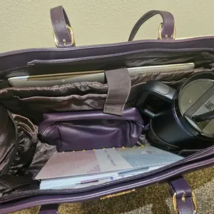 This tote bag is designed for women, featuring a 15.6" or 17.3" laptop compartment. It includes a clutch purse and 2 cup holders. The bag is lightweight and suitable for work, office, and casual use. It's an ideal Christmas gift.