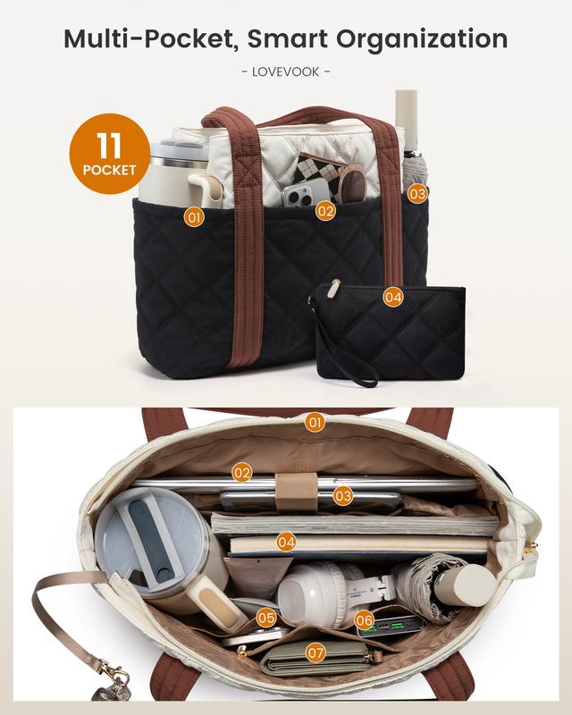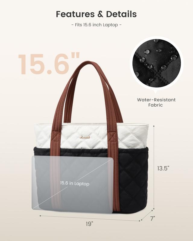 ·【Spacious 27L Capacity 】This roomy tote bag fits all your daily essentials, including a 15.6" laptop, iPad, water bottle, clothes, and more, while maintaining a sleek and compact look. The zippered closure keeps everything secure, perfect for daily, work and travel.