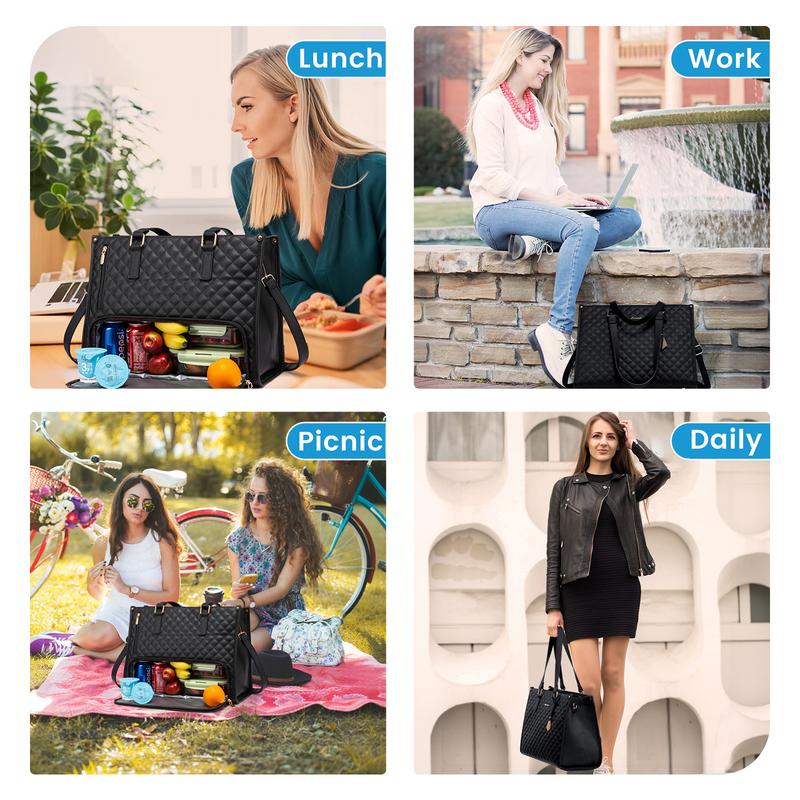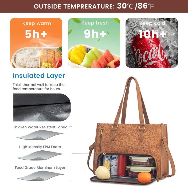 This bag has so much to offer. I bought for a friend who sits at the hospital working while her husband goes through chemo. It allows her to pack a lunch and carry her laptop and important medical papers. It is beautiful and a great quality product!