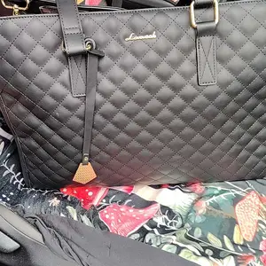 This bag is so spacious! I’ve got a few compliments. I’m happy with my purchase and have been using it ever since I got it. Also the shipping was fast.