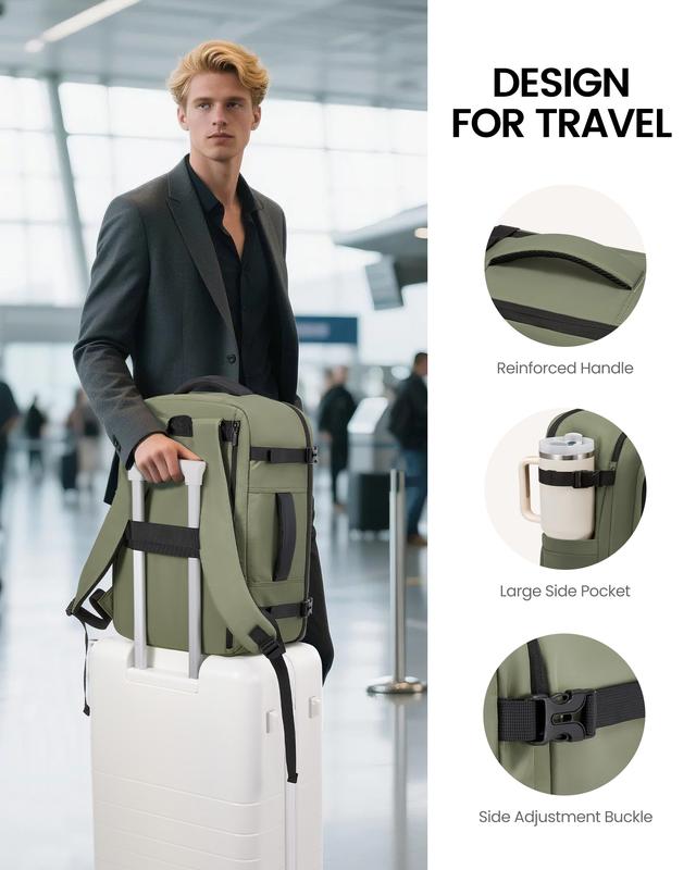 ·【Adaptable for Versatile Occasion】With sturdy side handles, this backpack offers versatile carrying options—handheld, over-shoulder, or luggage-mounted. It also functions as a suit bag, making it ideal for work, weekend trips or business travel.