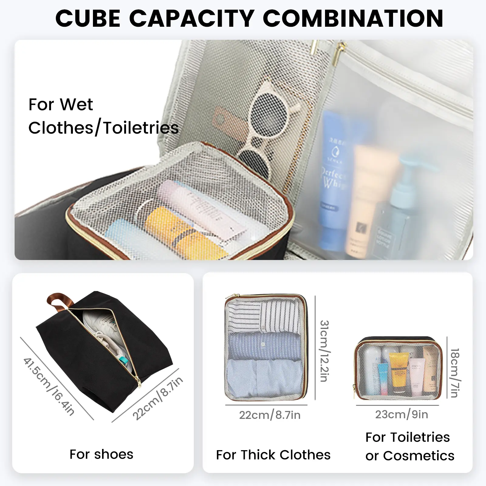 Bought this bag for my girlfriend’s birthday. Overall good bag for a weekend trip. 3 days max on clothes. Maybe 4-5 depending on how well you can pack. My gf however likes to take the entire bathroom so this bag obviously didn’t work for that. Overall it’s a good bag with nice quality. Definitely looks like the videos on TikTok.