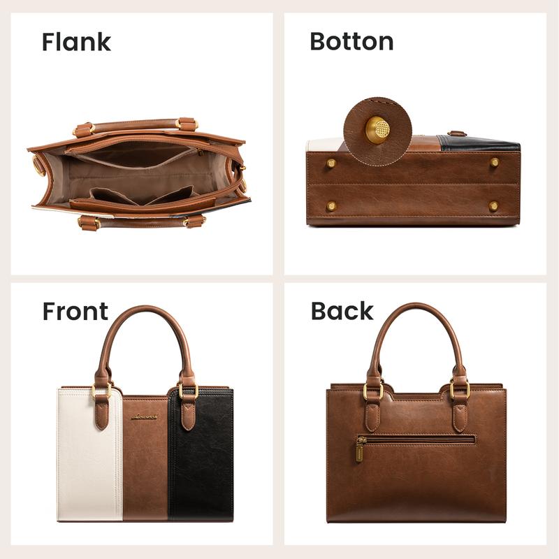 【Vintage Vegan Leather】Retro look in comfortable vegan leather; versatile for work, travel, or casual outings.