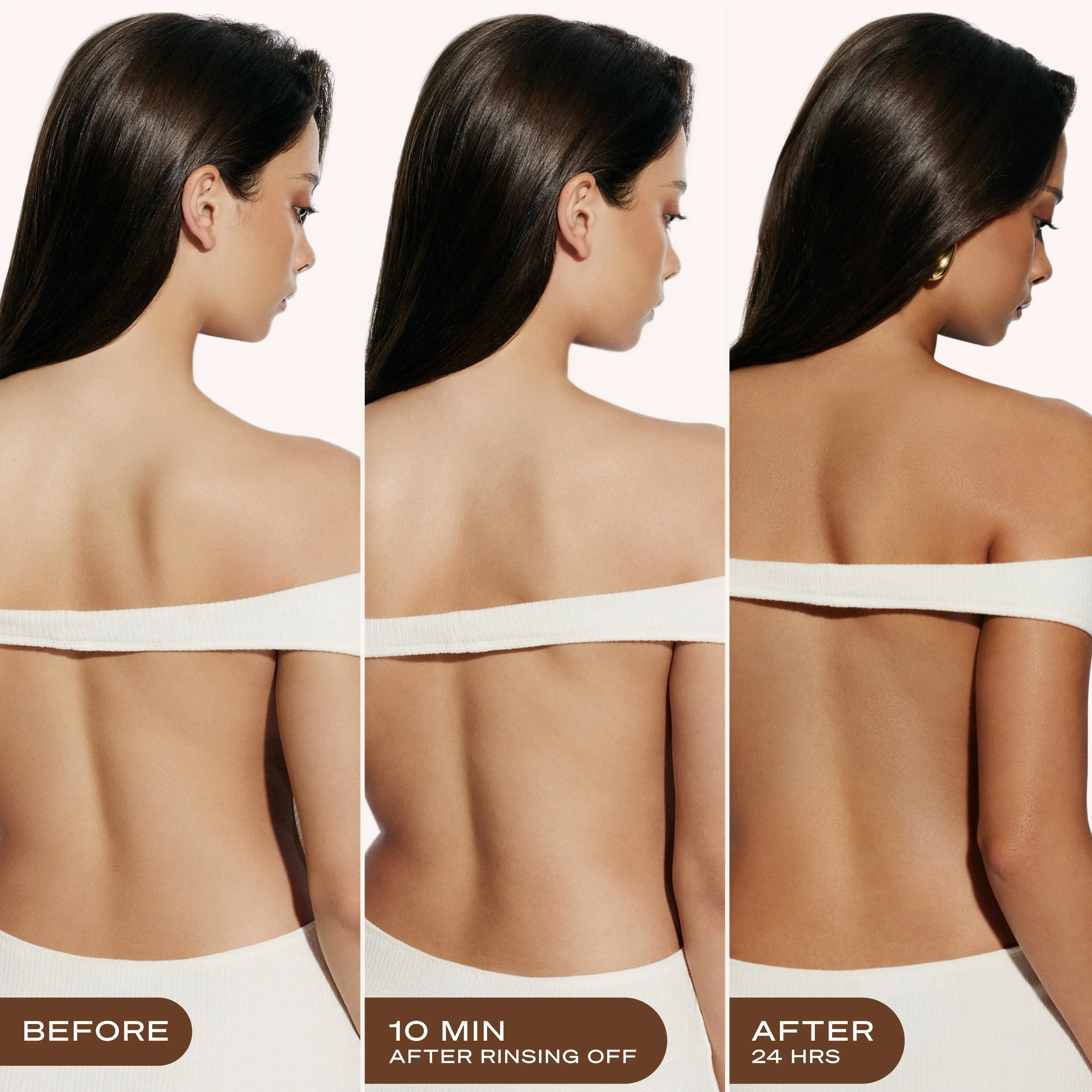 I’m so impressed!! The application process was smooth as butter, hydrating and smelled good! Rinsed off after 15 minutes, no soap just a long rinse. I could smell a faint self tanner smell probably 7 hours later, but extremely minimal. Next day incredible color, even and skin still felt hydrated. WOW. This is a game changer. Not having to marinate in self tanner is worth every single penny.