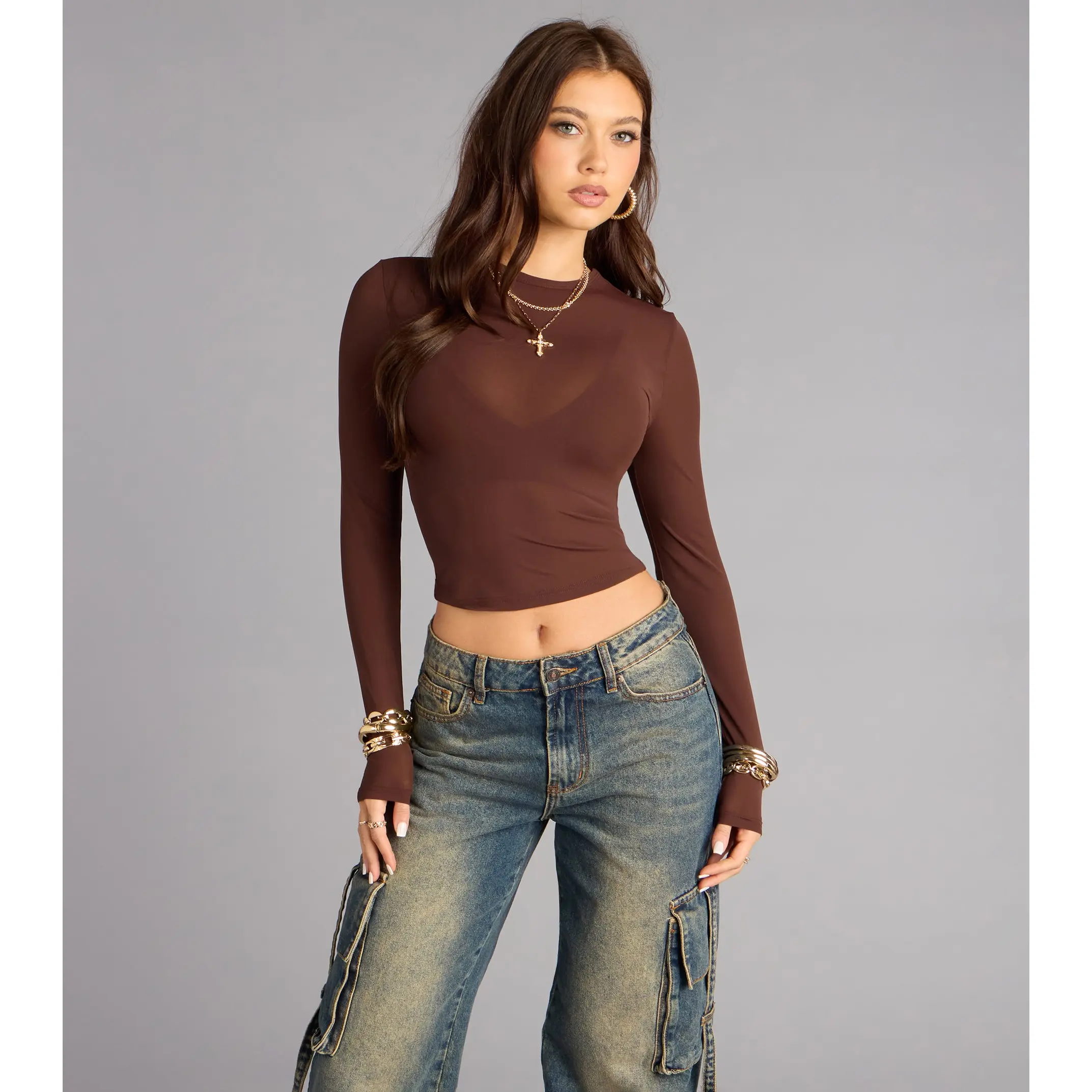 Low-Key Chic Sheer Mesh Long Sleeve Top