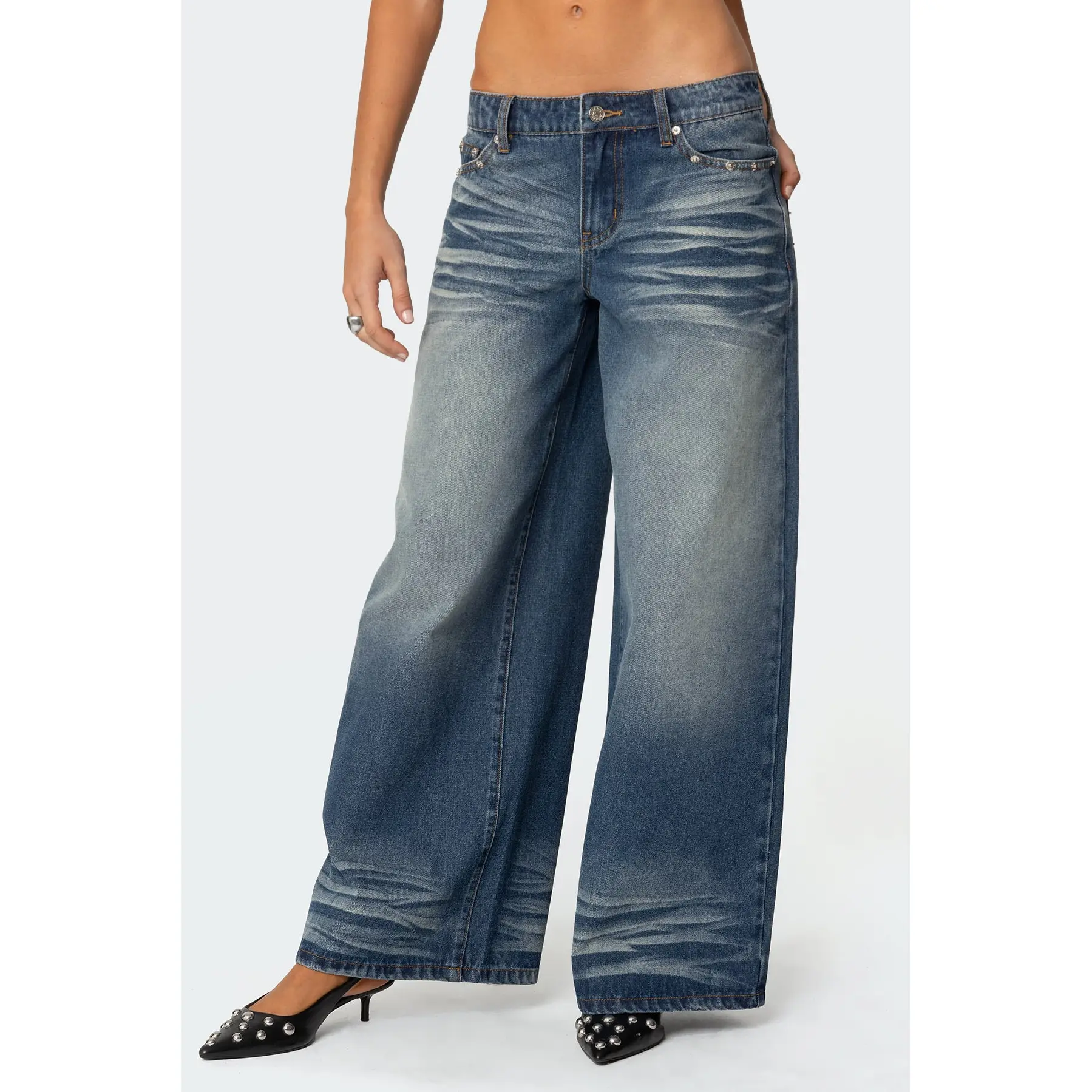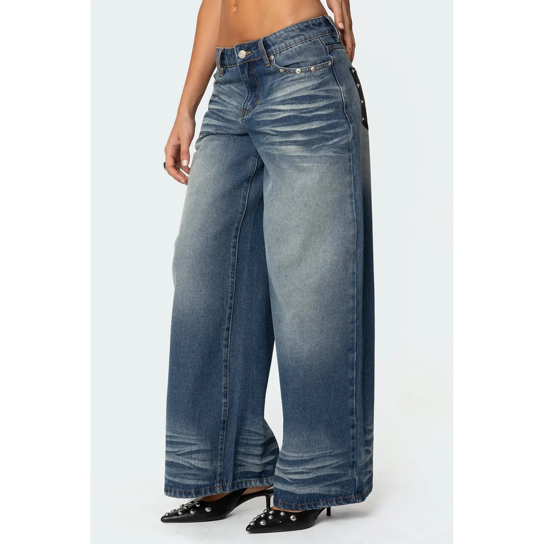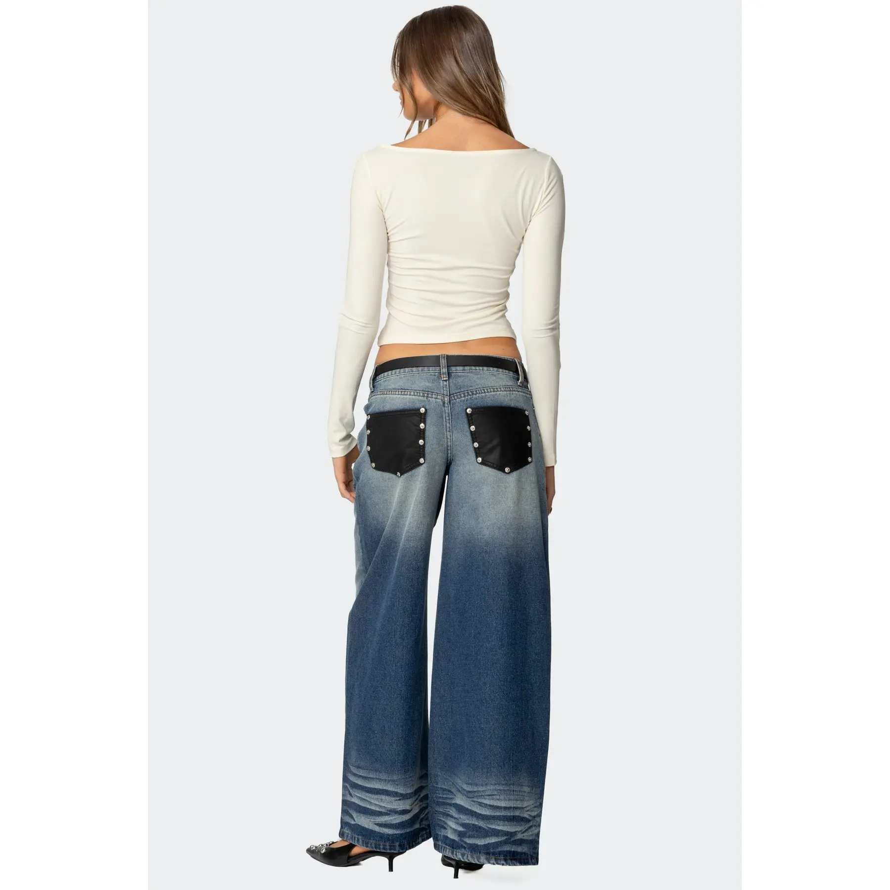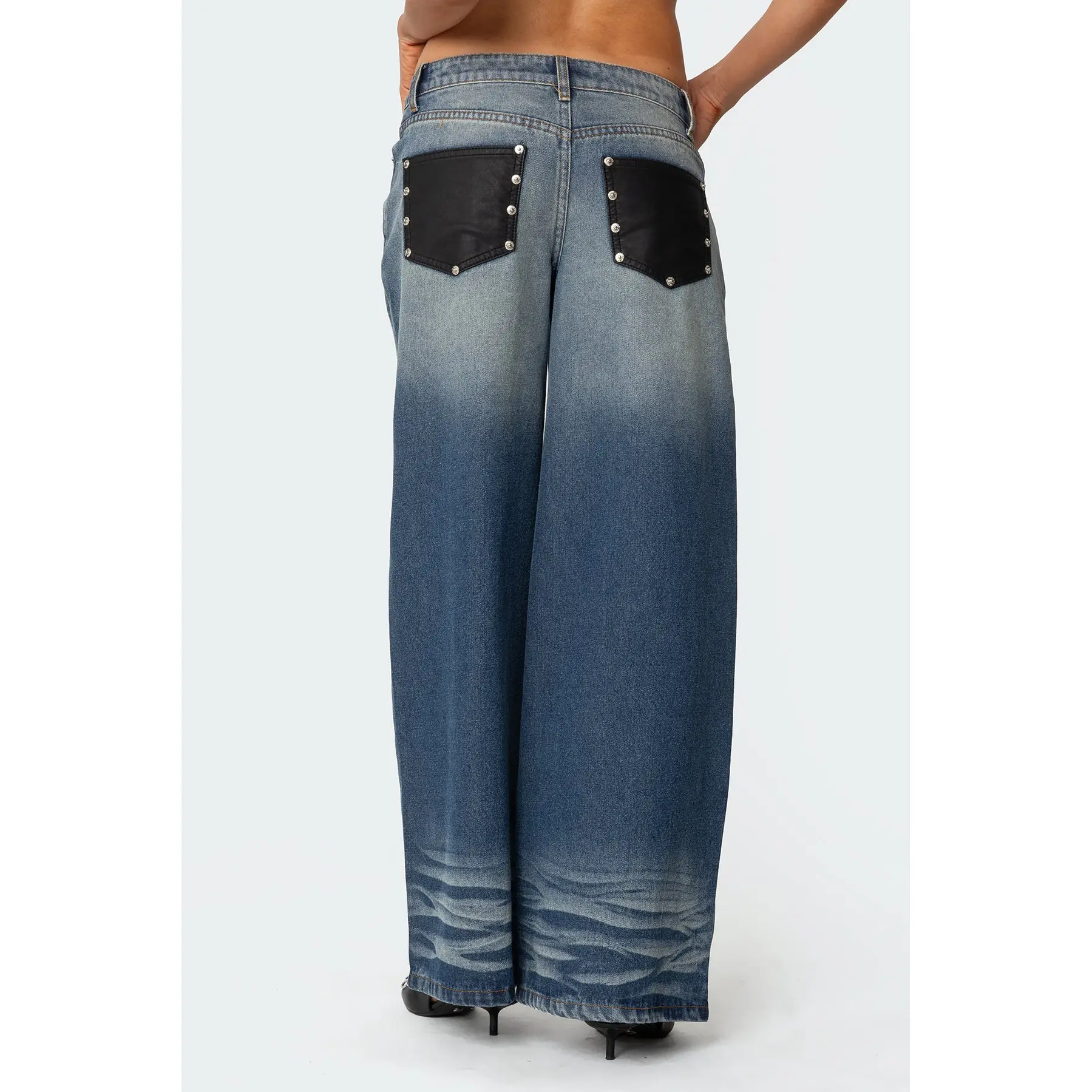 5. Faux Leather Pocket Low Rise Baggy Jeans