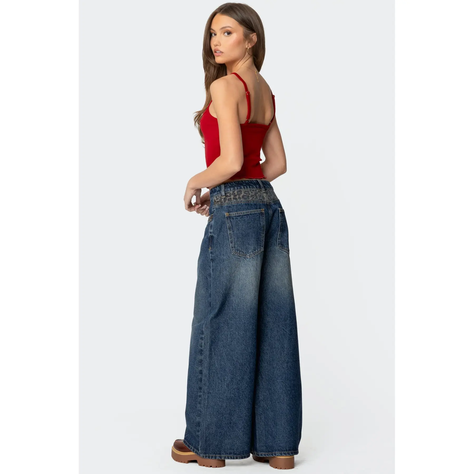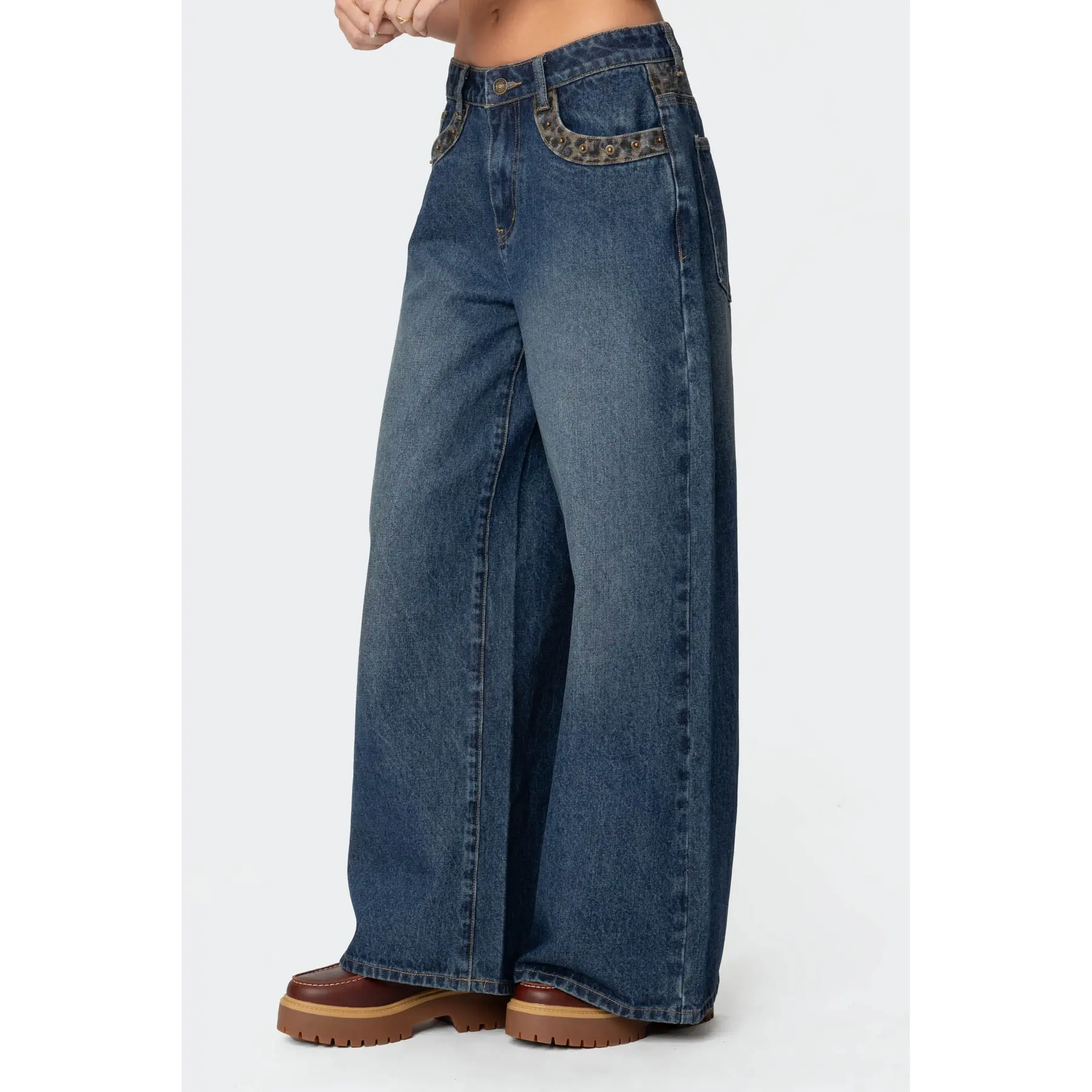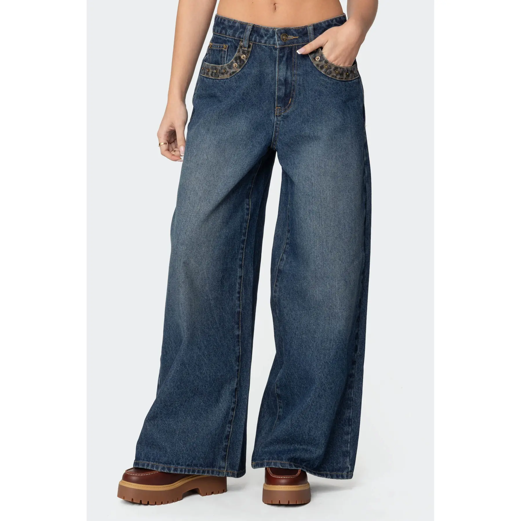 Gwen Leopard Detail Low Rise Baggy Jeans