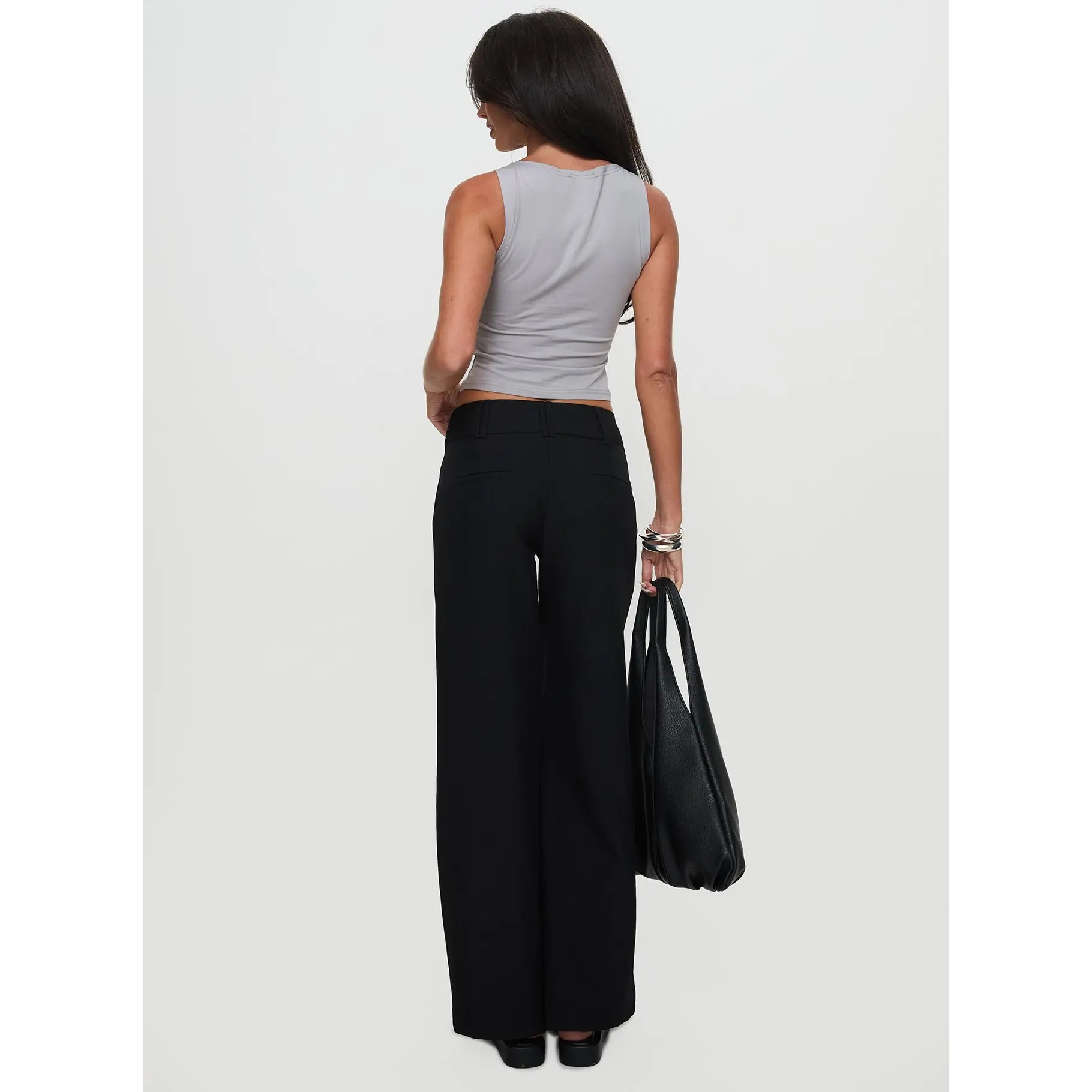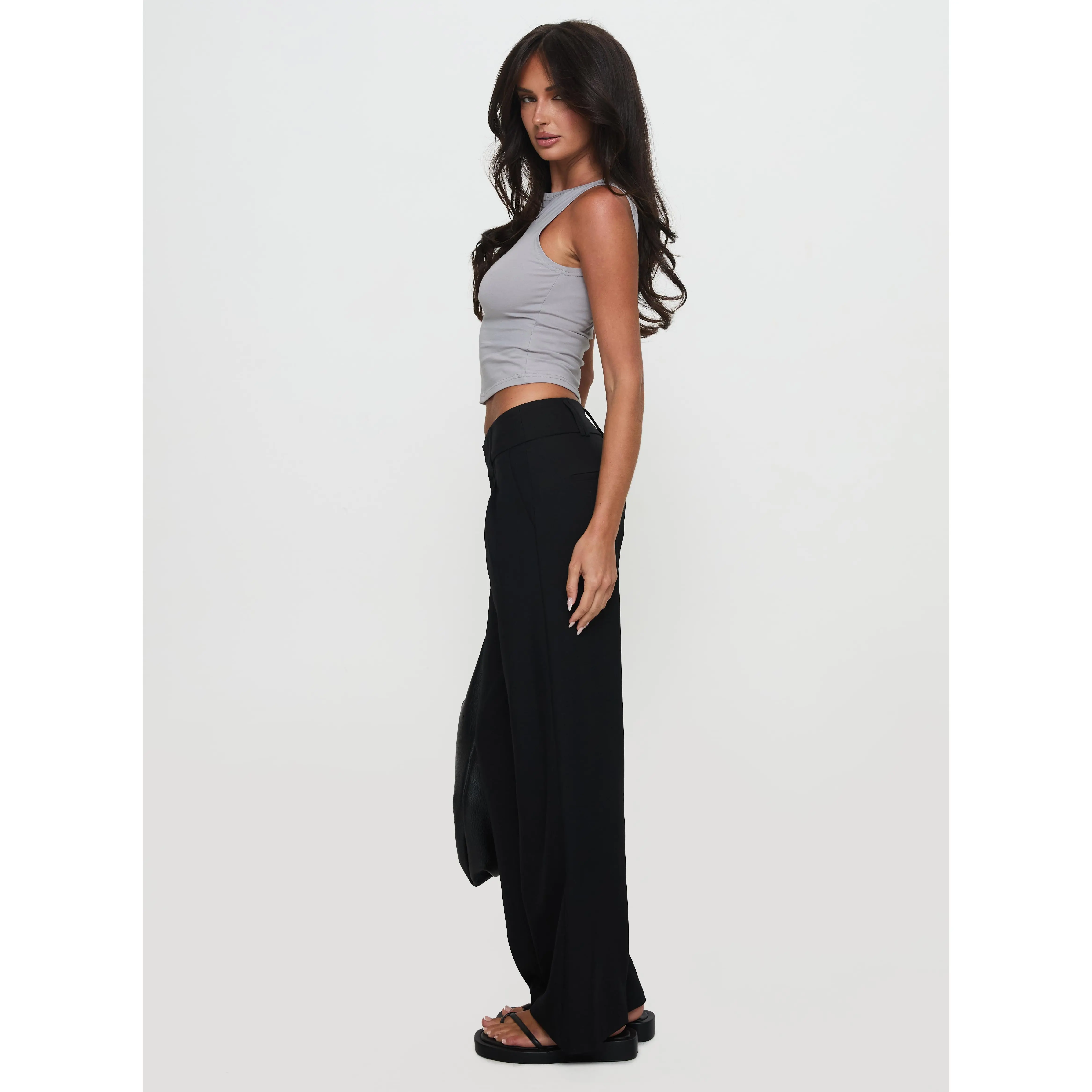 ·Double belt looped waist, hook & invisible zip fastening, twin hip pockets, pleats detail under waist, two faux pockets at back