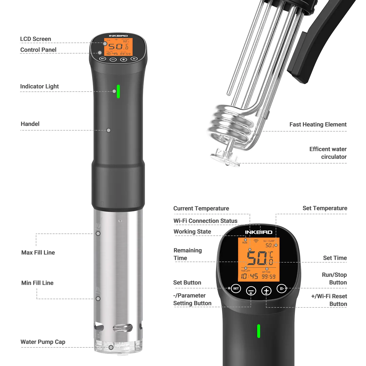Download the InkBird Pro app for free and connect the Sous Vide to a 2.4GHz Wi-Fi network, then you could set and monitor the Sous Vide on your phone wherever you are. Set your family members as administrators on the app if you want to share the device with them, support max 100 administrators at a time.