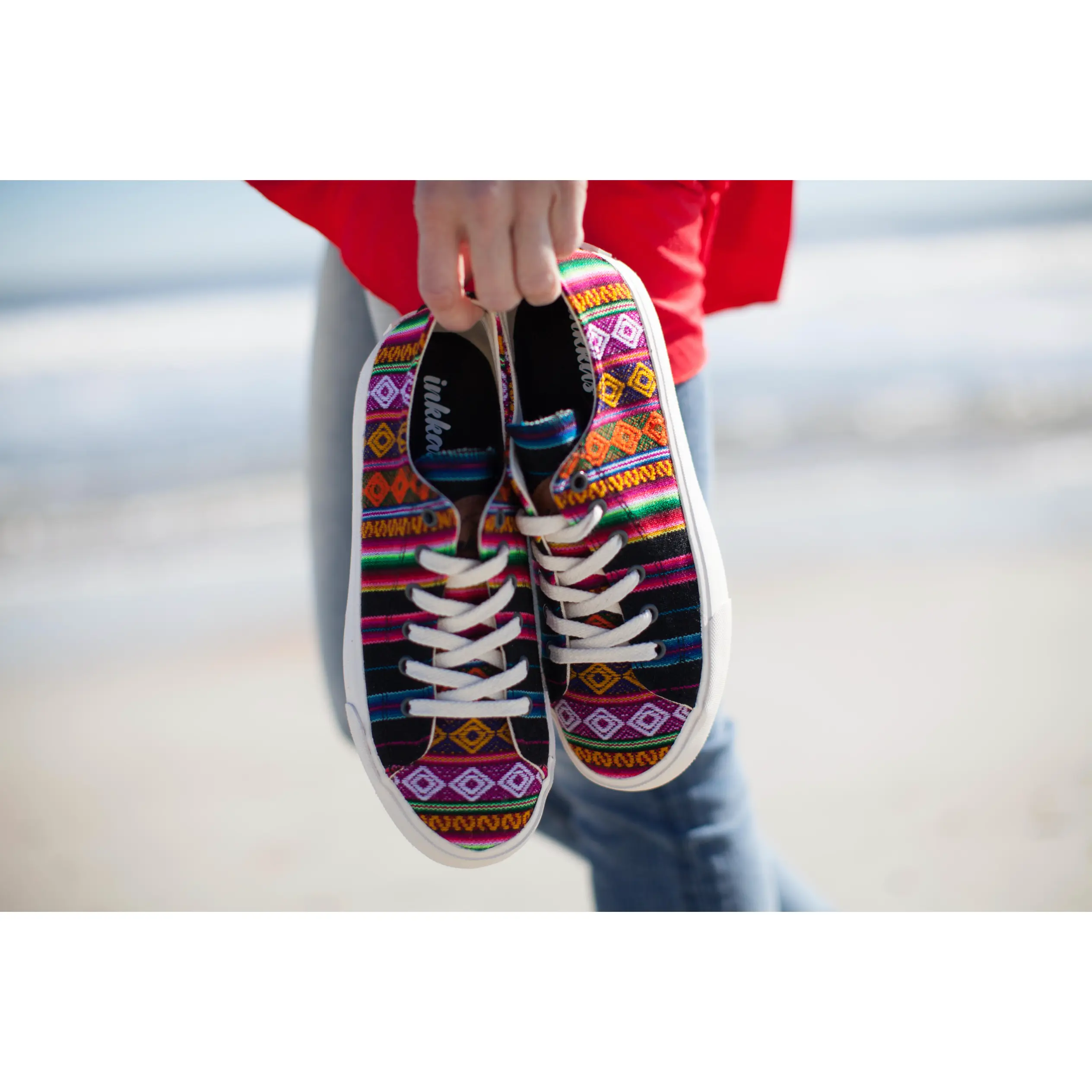 The Black Spectrum Low Top has been one of the most iconic Inkkas products since it was initially launched with our first collection in 2012. Stand out with this unique, authentic and responsibly-sourced pair of low tops. The Black Spectrum Low Top is constructed using authentic Peruvian textiles made by local artisans in Peru. Every pair is cut, sewn & stitched by hand.