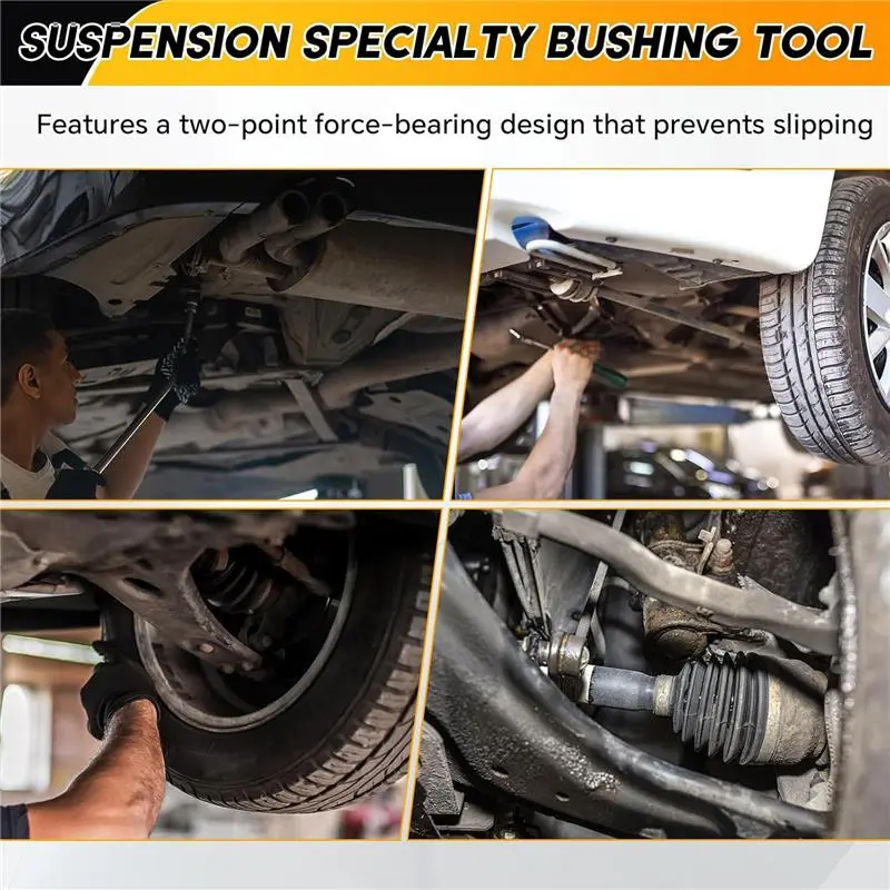 Compatible with 1/2" Drive Extension Breaker Bar, this suspension specialty bushing tool can withstand high pressure without deformation. Ensuring durability and reliable performance for tough tasks. Made from forged alloy steel, it's rugged and corrosion-resistant, ensuring safety during use without damaging other car parts.