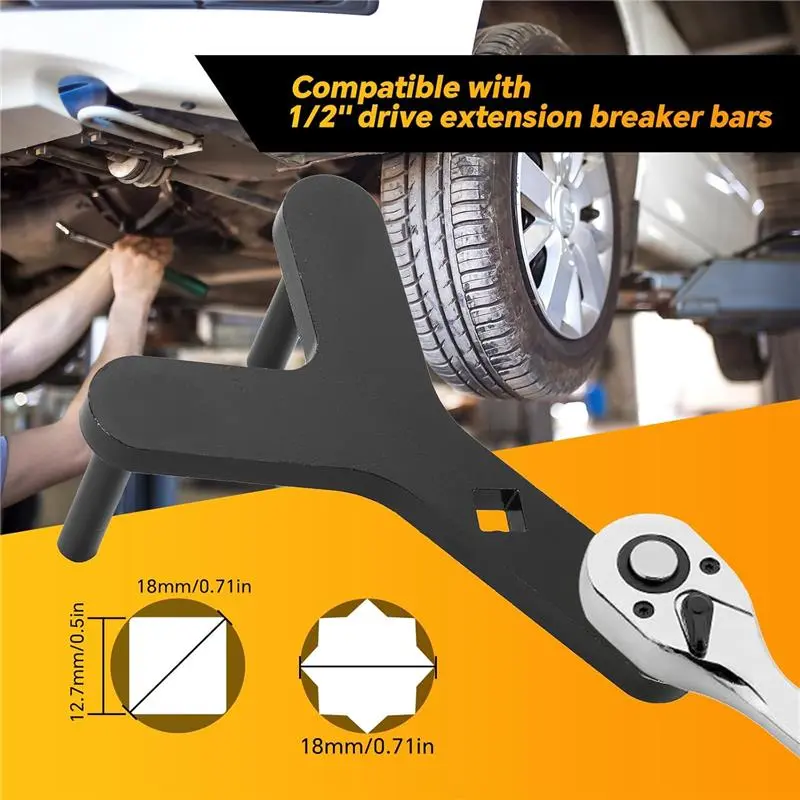 Suitable for most front-wheel-drive vehicles, minivans, and both import and domestic models. This lower control arm prying tool is ideal for a wide range of vehicles. It provides extra durability and the ability to handle high pressure without deformation. Compatible with 1/2" drive extension breaker bars.