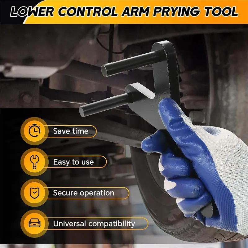 This new lower control arm prying tool is designed for prying down the lower control arm to separate the lower ball joint. It efficiently helps free the ball joints from knuckles. The adjustable pulling arm allows you to position the tool as needed, making suspension system repairs quicker and easier. Perfect for DIY mechanics and professionals.