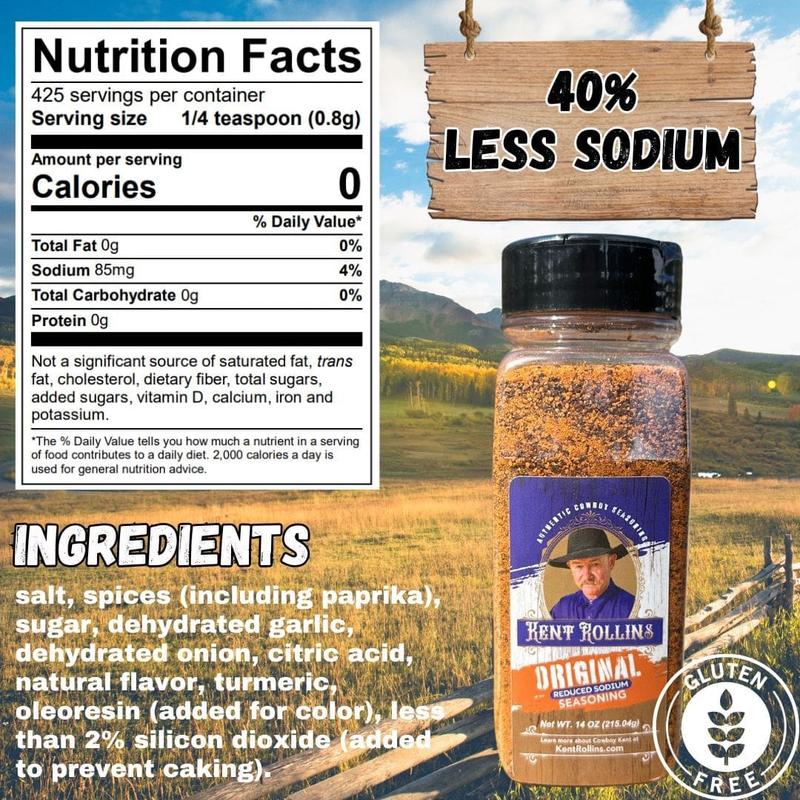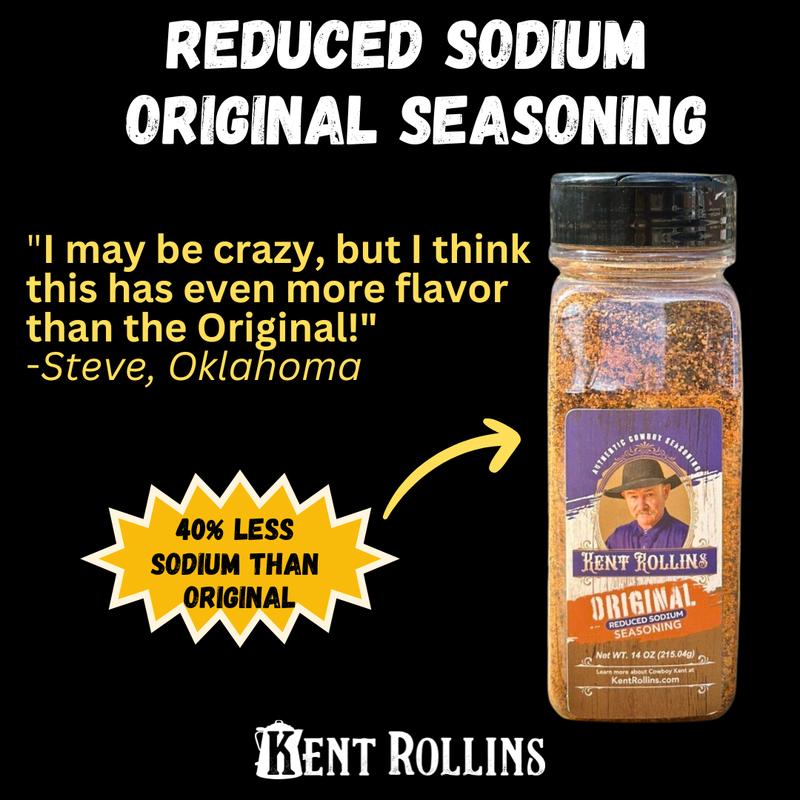 Lower Sodium Original Seasoning - Cowboy UP Your Salt & Pepper Game with Reduced Sodium; Kent Rollins Blend