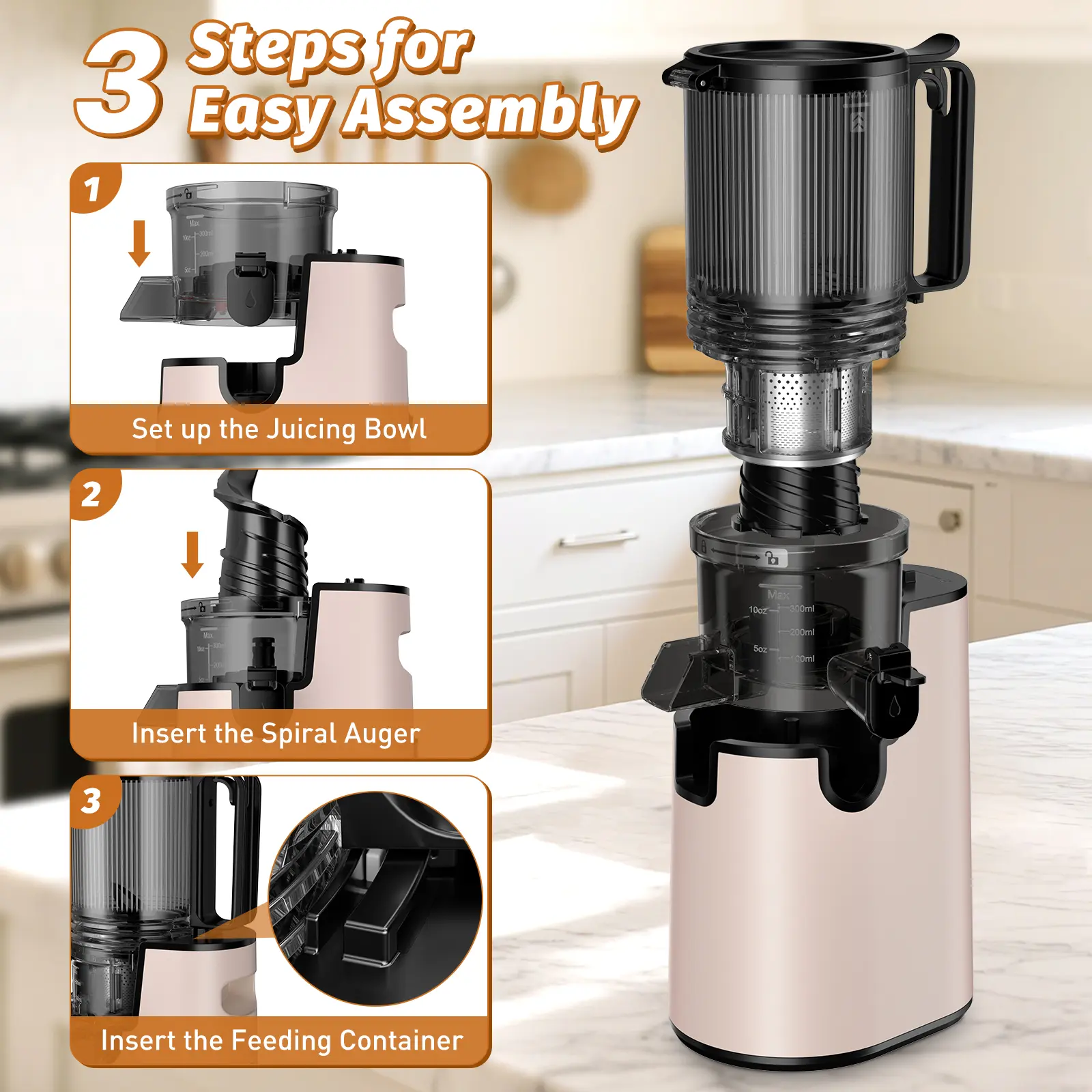 Boasting a 350W motor paired with new upgraded spiral augers, this juicer delivers efficient cutting and squeezing performance. It minimizes juice oxidation, helping you whip up fresh, delicious juice with ease and speed.