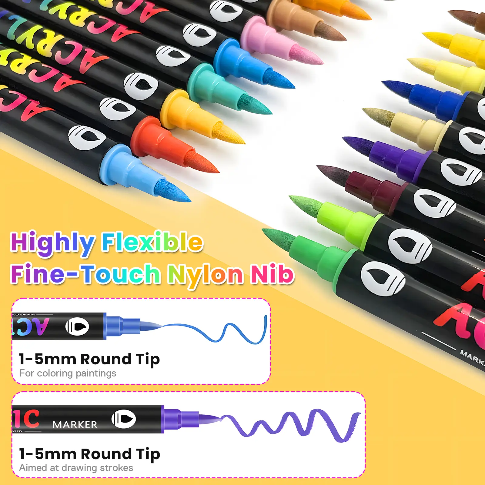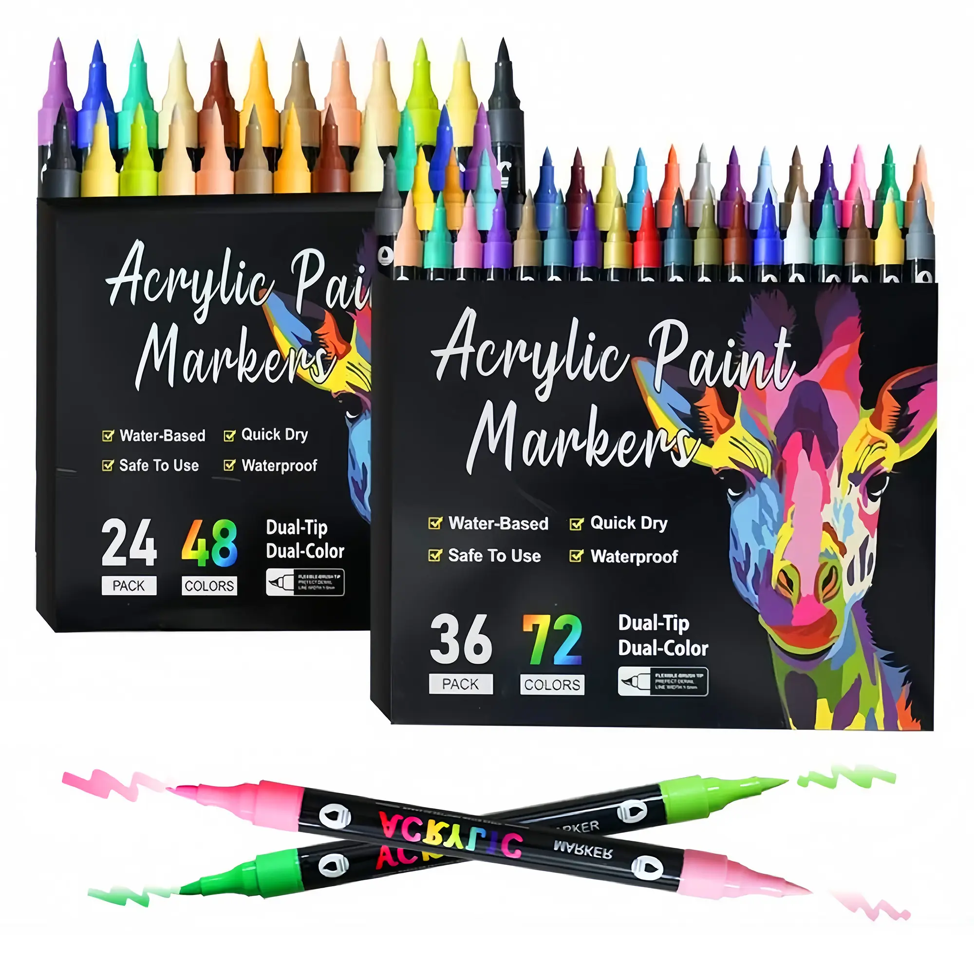 I love acrylic markers but this pack came damaged it had a few cuts for some reason in the packaging and a rip also it came with three less markers and advertise there were only 33