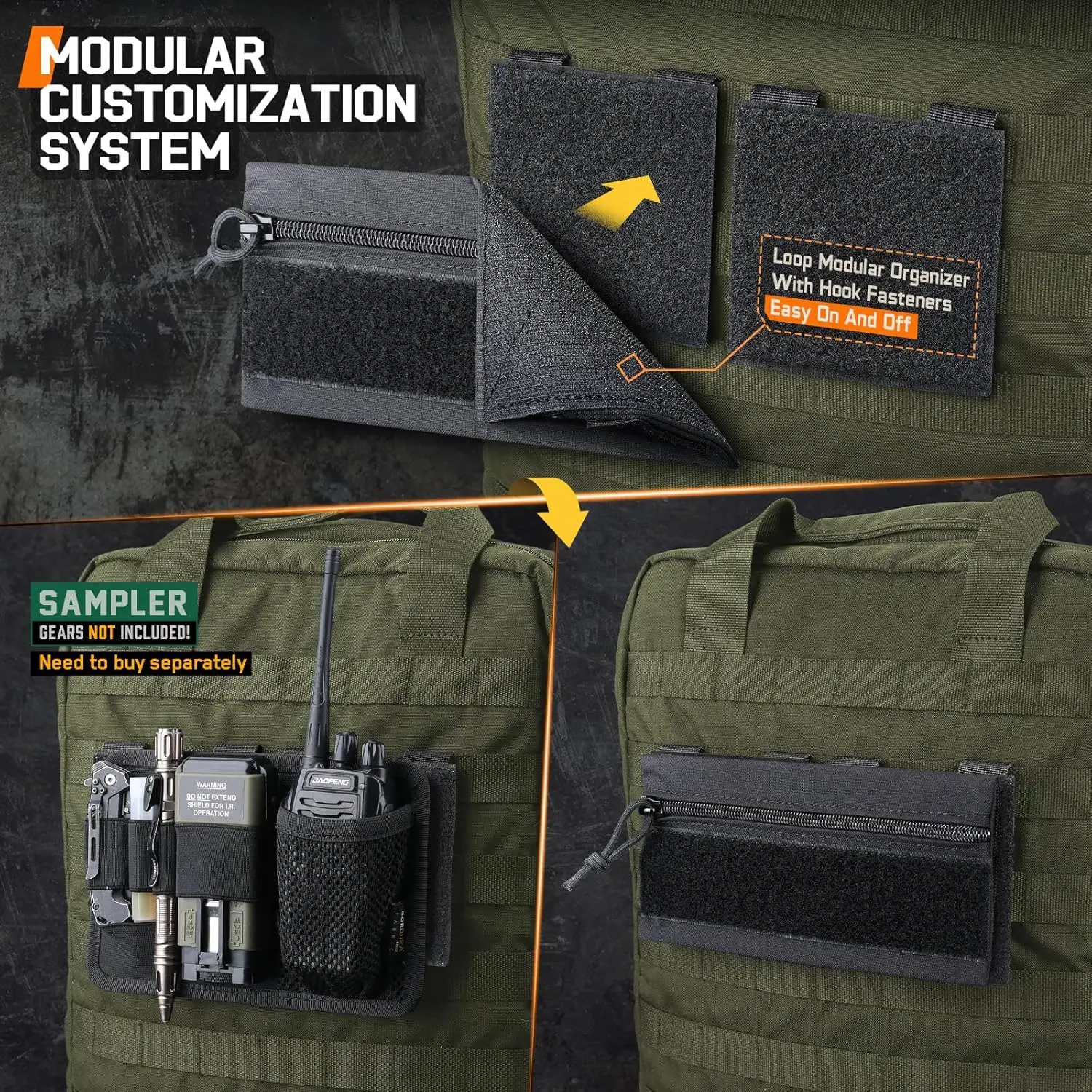 Molle hook&loop panel does more than just display your patches—it offers a flexible, modular setup for your MOLLE-compatible gear. By linking multiple panels together, you can expand your storage and instantly attach an hook-backing EDC mini-pouch. This setup allows you to organize and customize your gear exactly how you need it, ensuring that your patches, badges, and essential items are all in one place.
