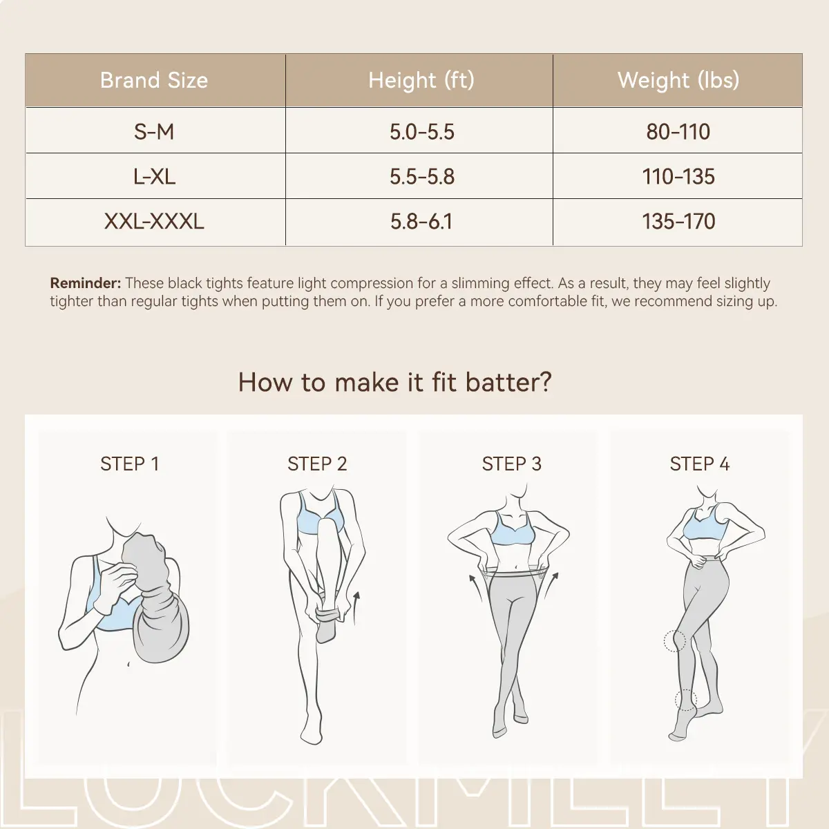 ·Various Size: There are three sizes of tights, which can fit different sizes and body types. You can refer to the actual size of the size chart on the left to choose the appropriate size. Our black tights are suitable for women of all body types!