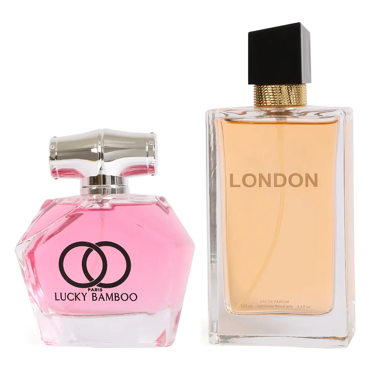 Experience a versatile fragrance duo with the Lucky Bamboo and SP London perfume bundle for women. Each 100ml spray offers a fresh, elegant scent perfect for daily wear. Enjoy a blend of white floral, citrus, and sweet notes, with a fragrance longevity of approximately 4-6 hours.