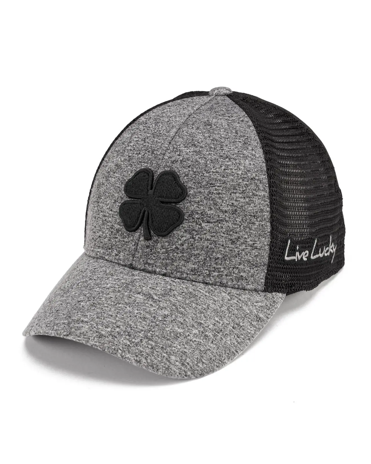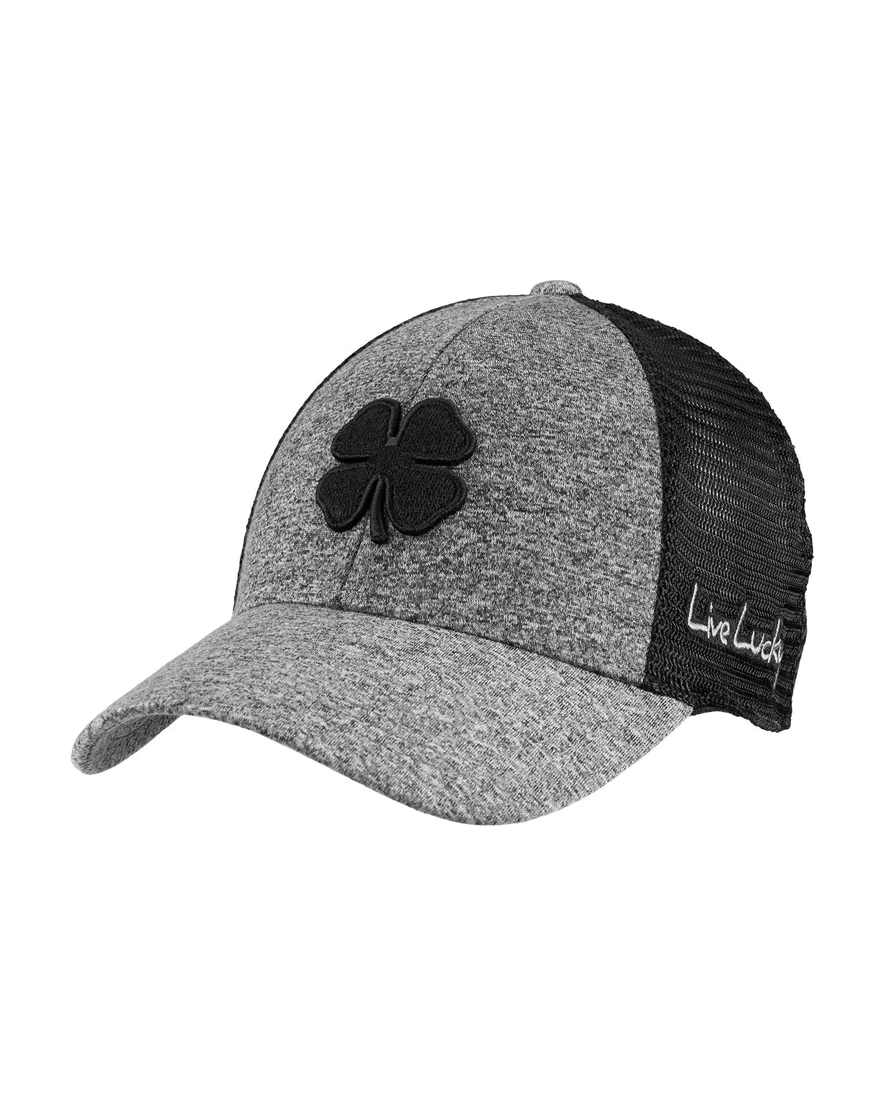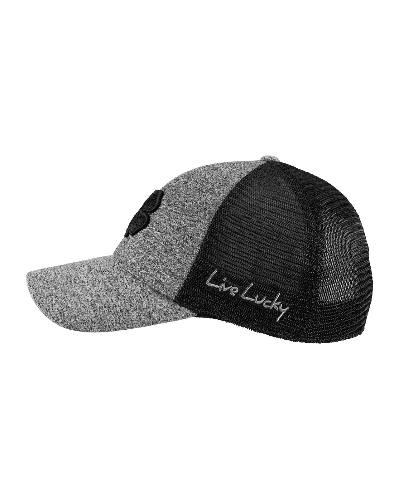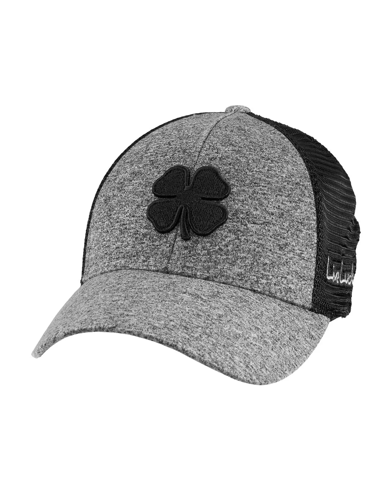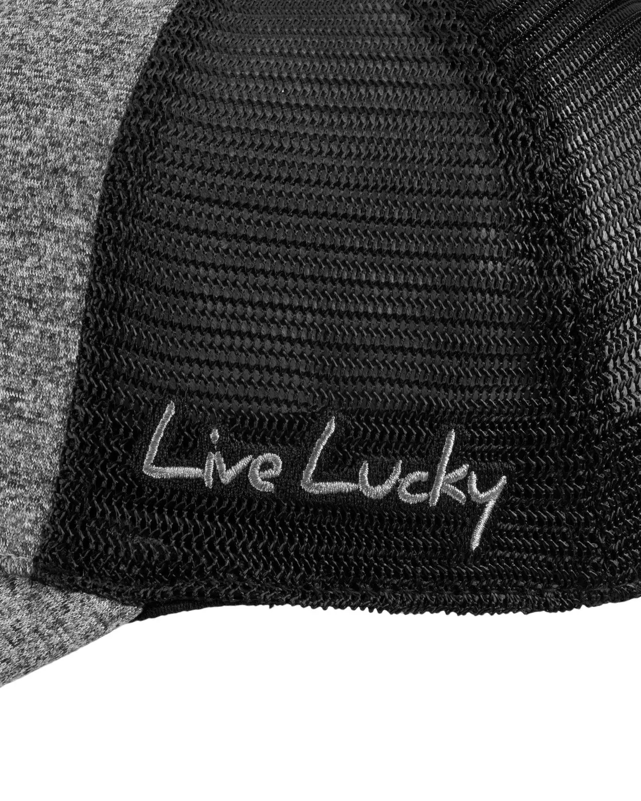 Comfort meets class with our Mesh Gray Lucky Heather Hat, part of our new exclusive Memory-Fit™️ athletic headwear. This fitted two-tone hat features breathable black stretch mesh with charcoal heather gray, adorned with our black signature clover emblem in 3D. Our unique Memory-Fit™️ technology incorporates high-quality memory foam in the headband, offering a superior fit that molds to your head, enhanced comfort for long-term wear, increased sweat absorption, and exceptional wearability.