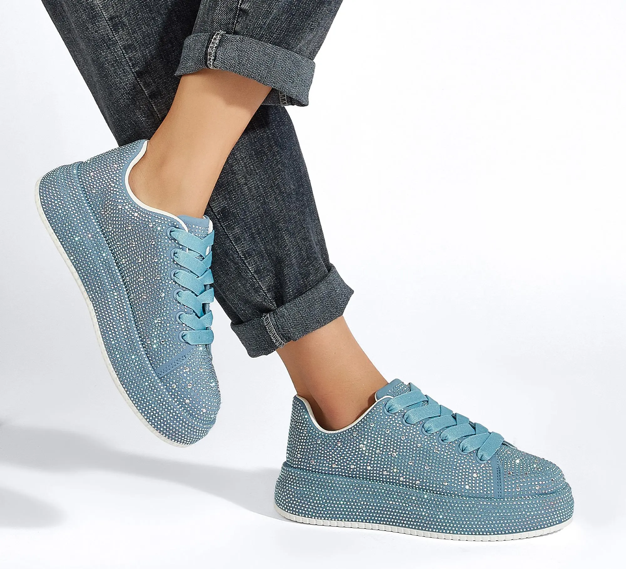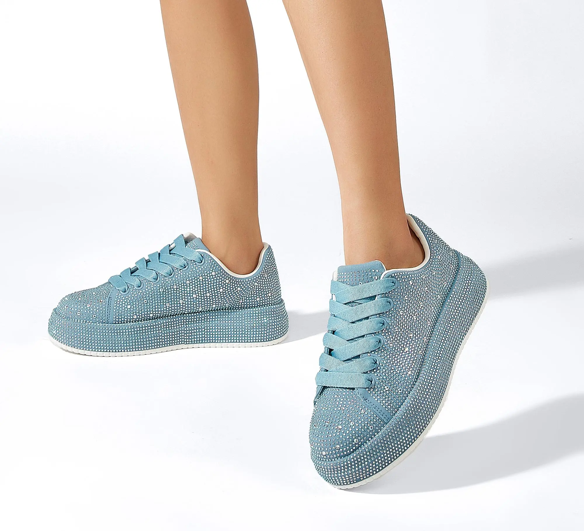 Two Options: One with rhinestone-studded upper and sole, the other with a studded upper only. Both are stylish and trendy.