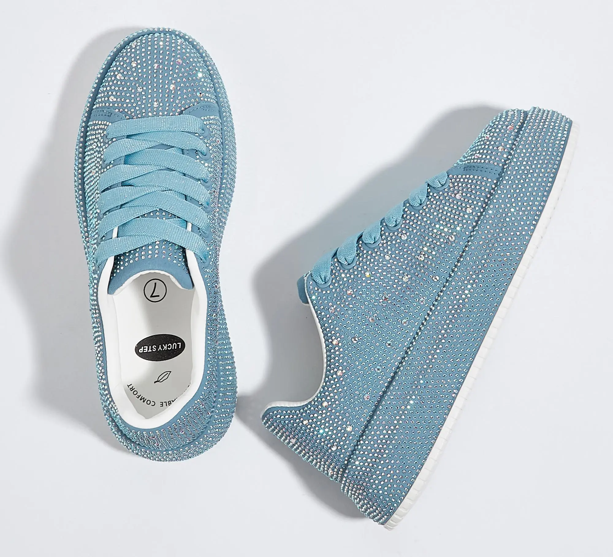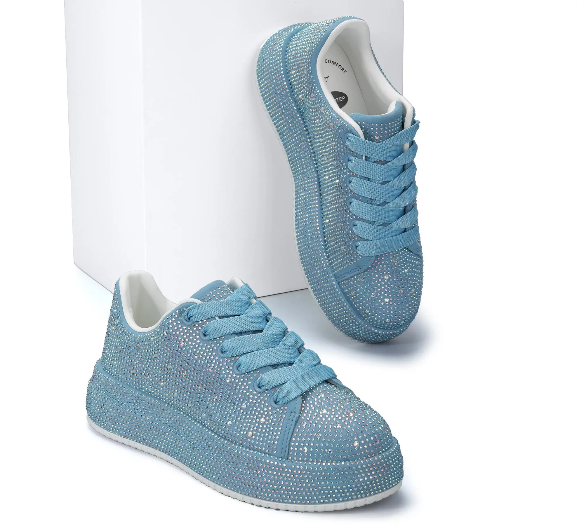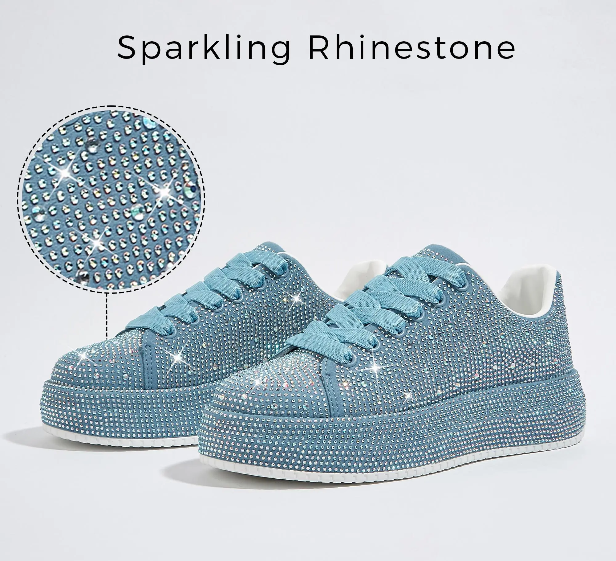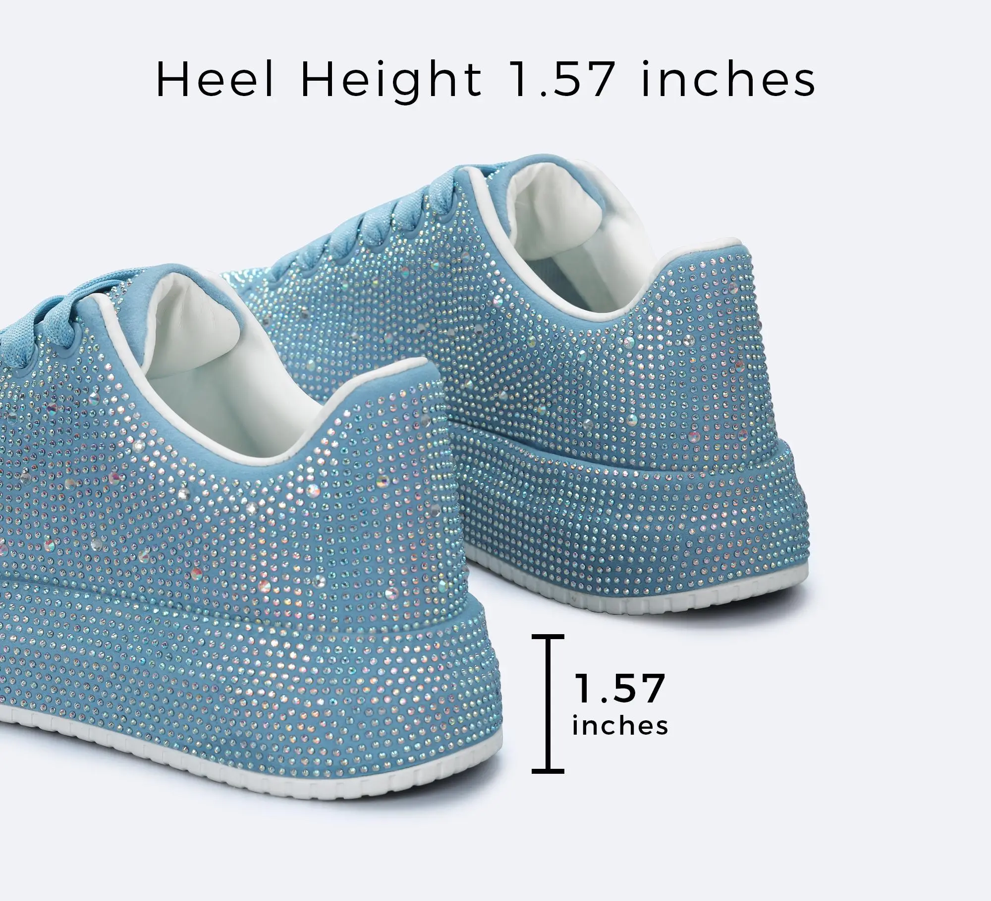 ·Elevated Style with Sparkle: The LUCKY STEP Rhinestone Sneakers feature an ultra-light sole, 1.57 inches tall, adding extra lift. The entire upper is rhinestone-studded, creating a dazzling effect. Perfect for weddings, bridal parties, or casual walks. Choose a smaller size for narrow feet; opt for your usual size for wider feet.