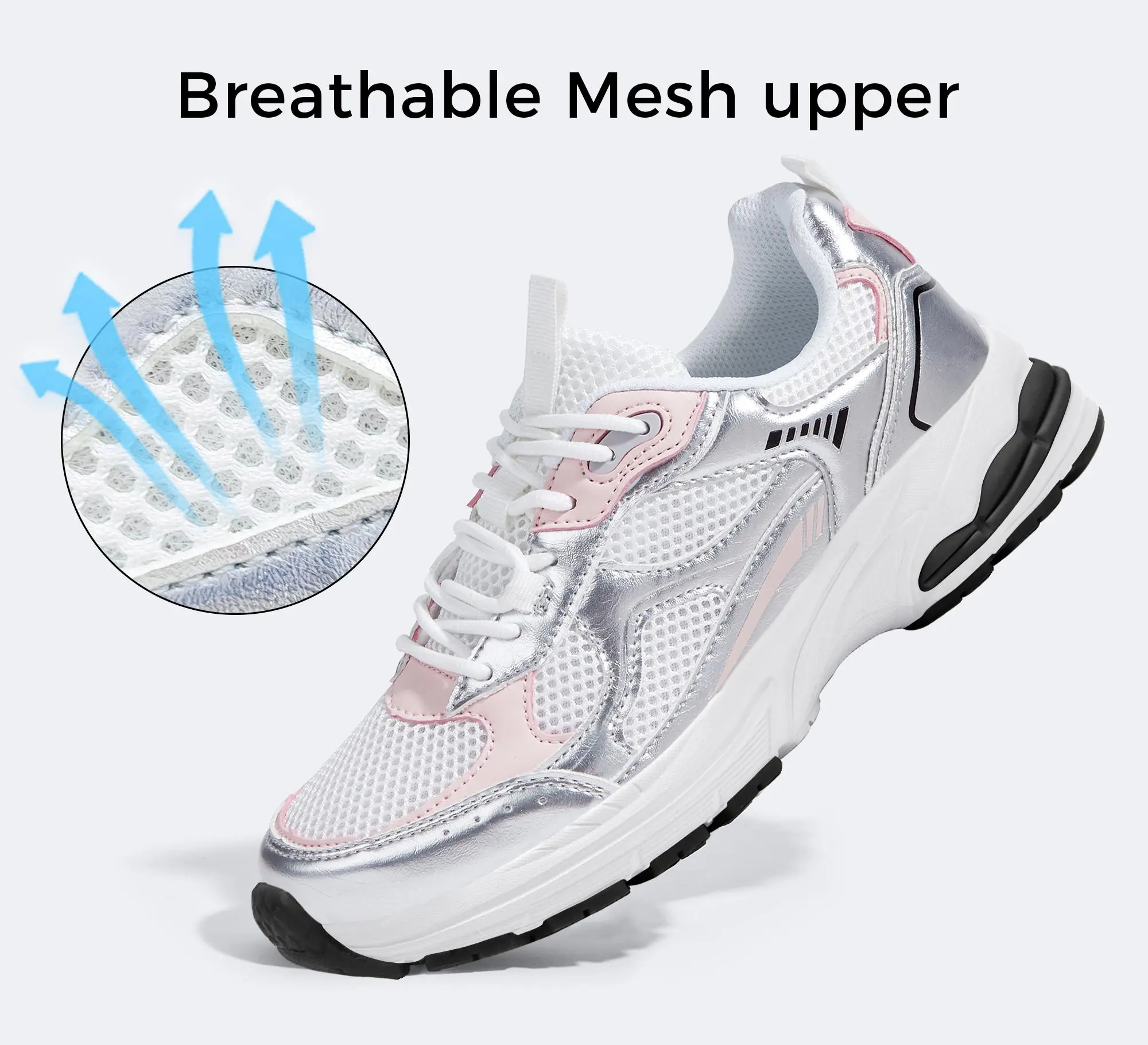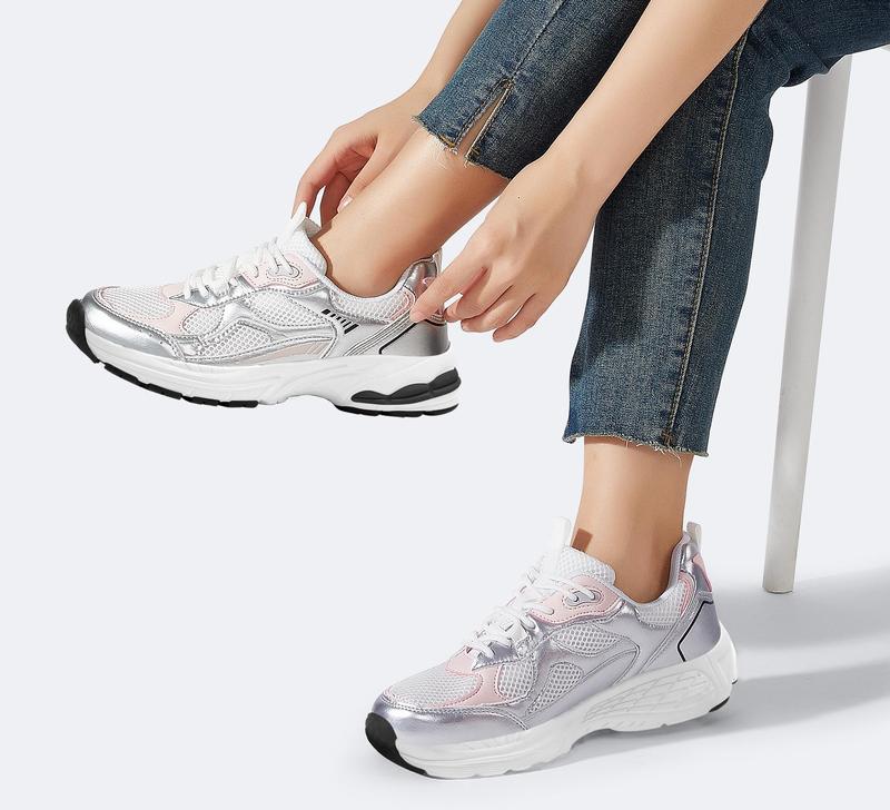 ·Breathable Mesh Upper: Stay cool and dry all day long with our women's platform sneakers. The breathable mesh upper and lining, along with a high-density foam insole, provide ample arch support for all-day comfort.
