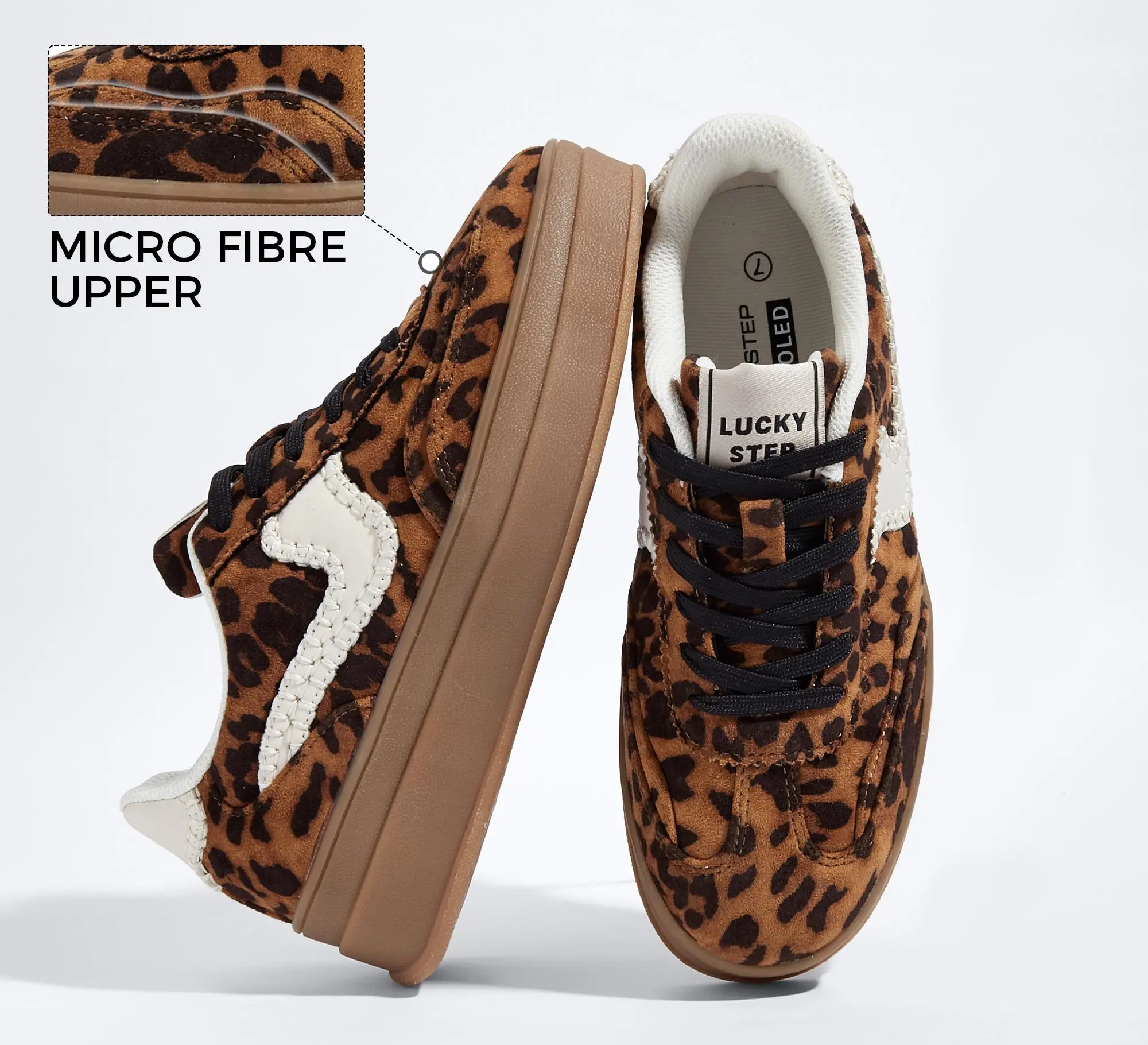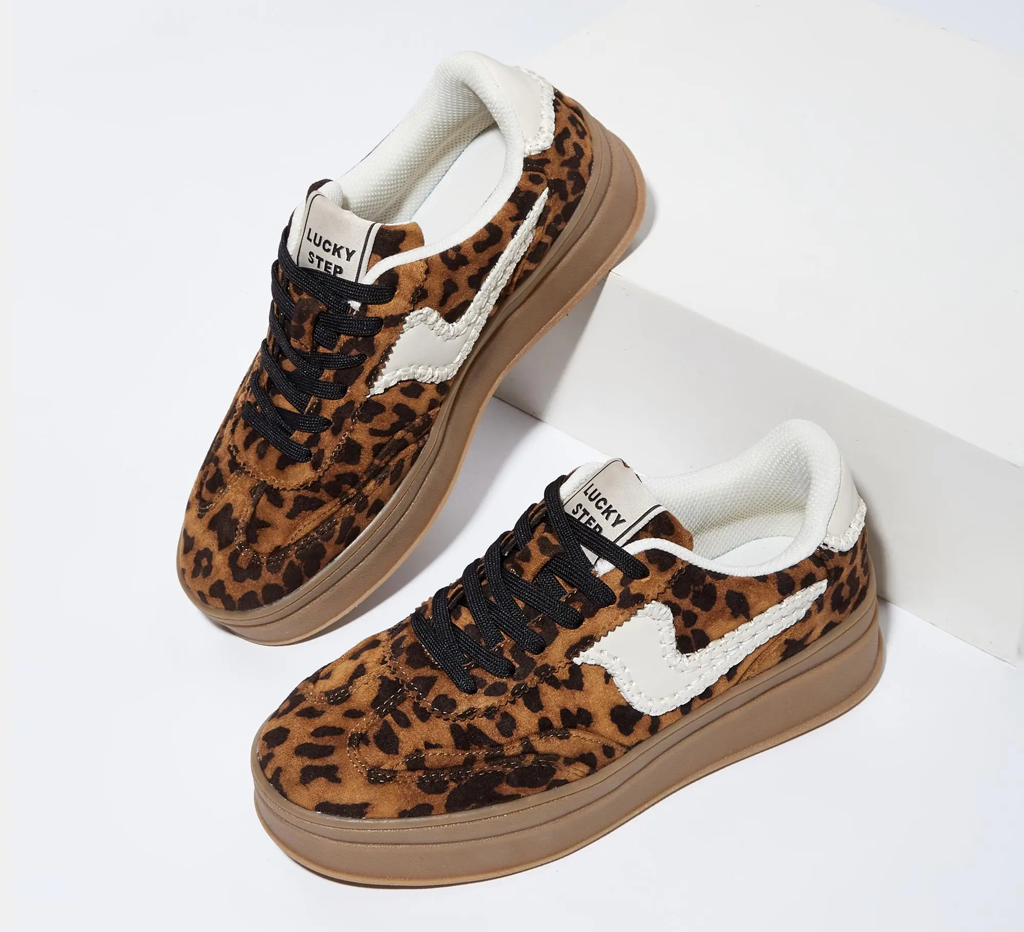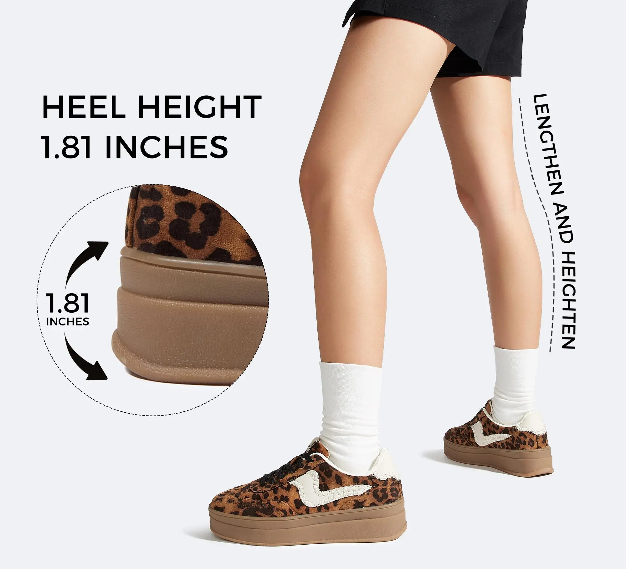 ·Elevate Your Style: The LUCKY STEP Women's Platform Fashion Sneakers feature a thick sole with a heel height of approximately 1.81 inches. This design elongates your leg lines, adding a touch of elegance to your casual look. The sneakers are crafted from breathable genuine leather and suede patchwork, ensuring comfort during running or walking.