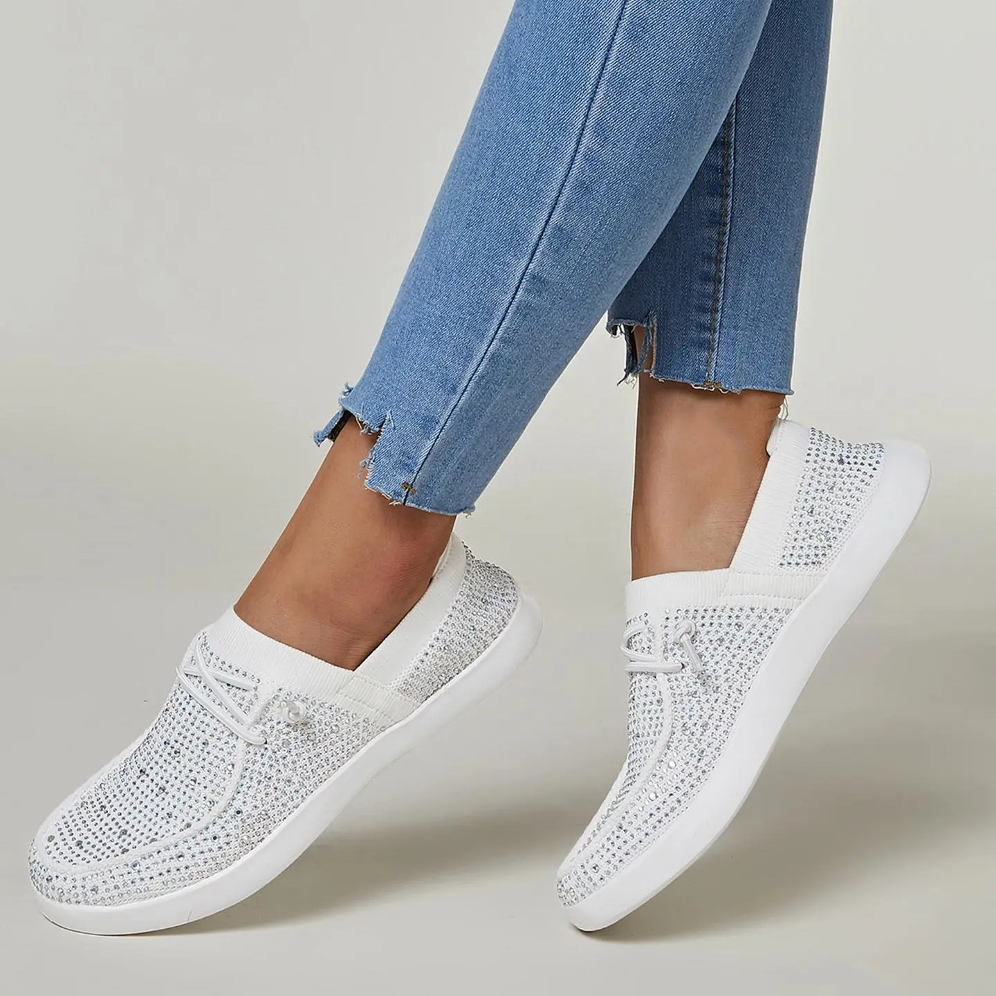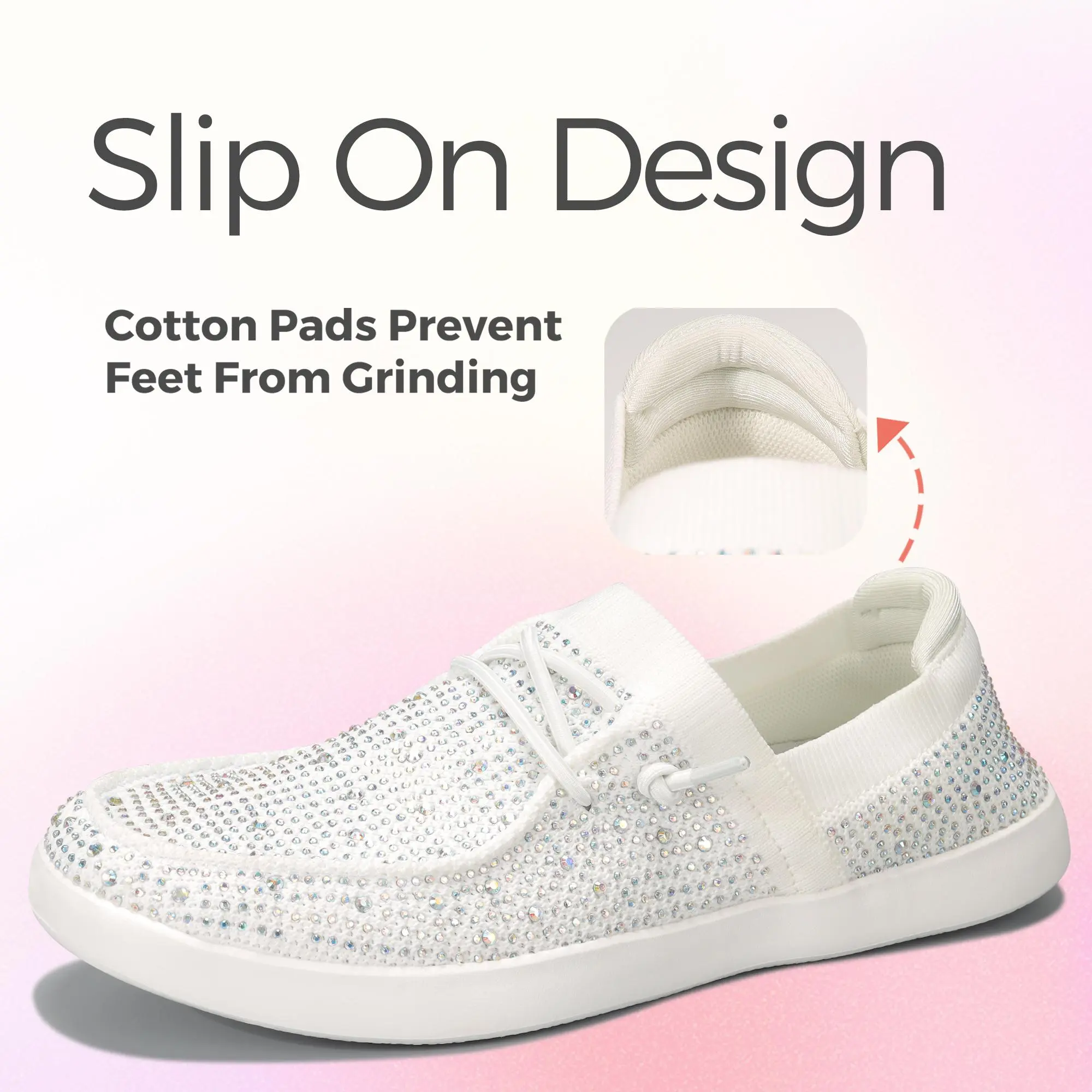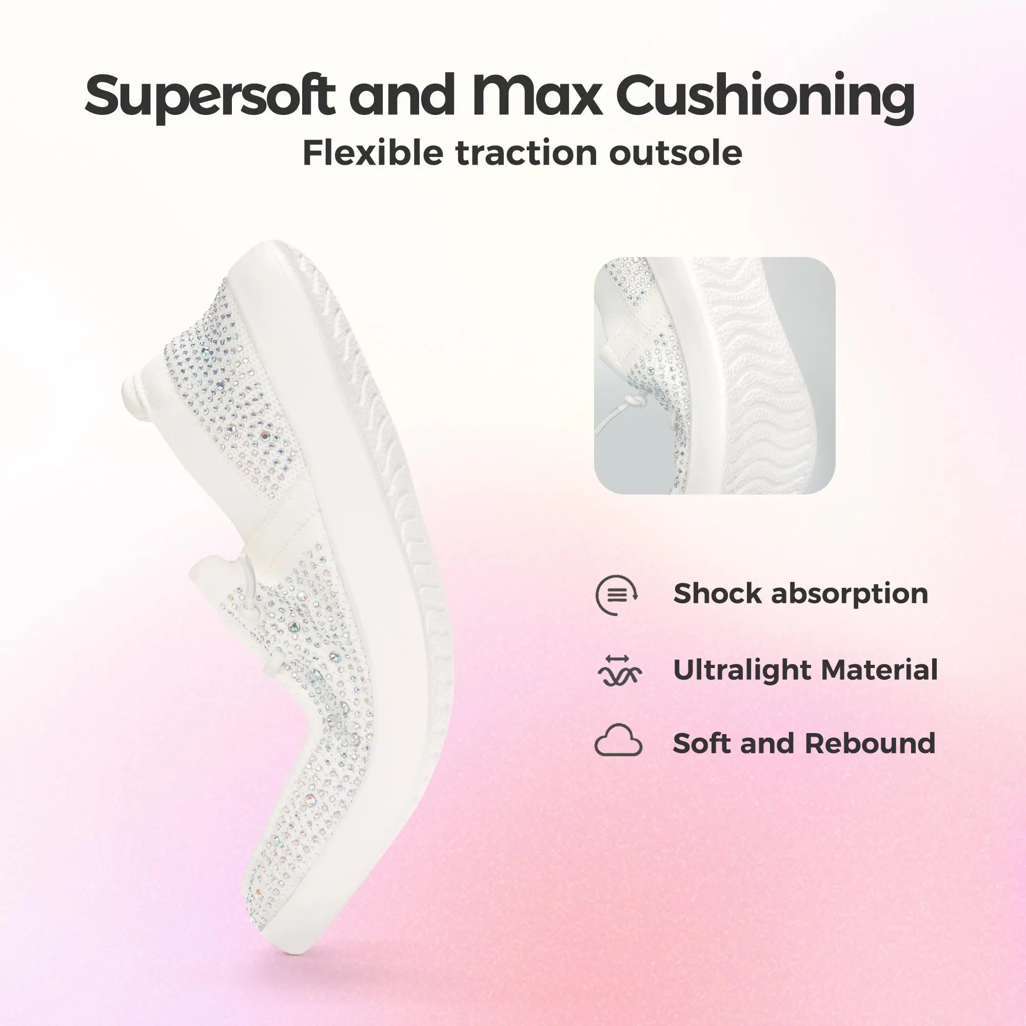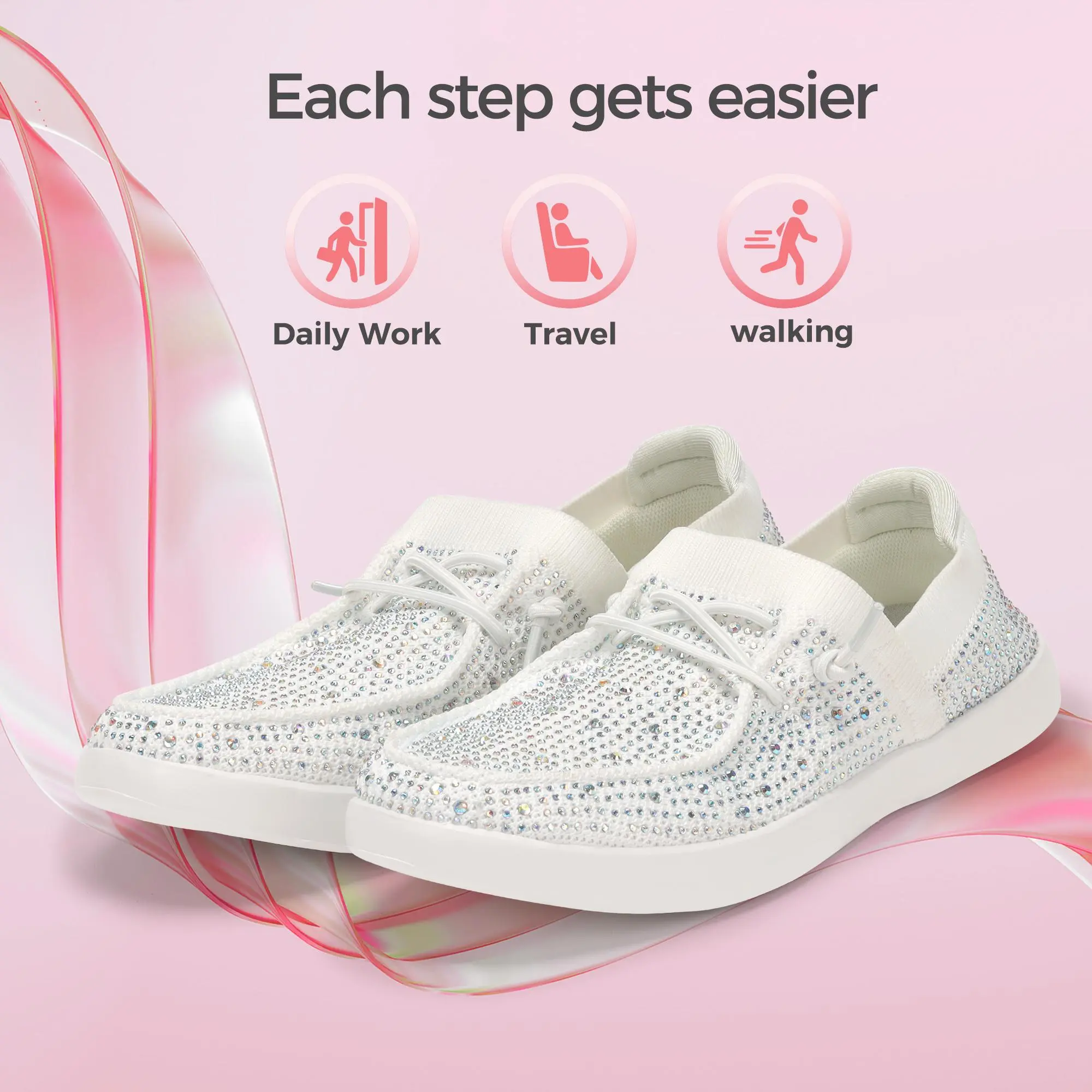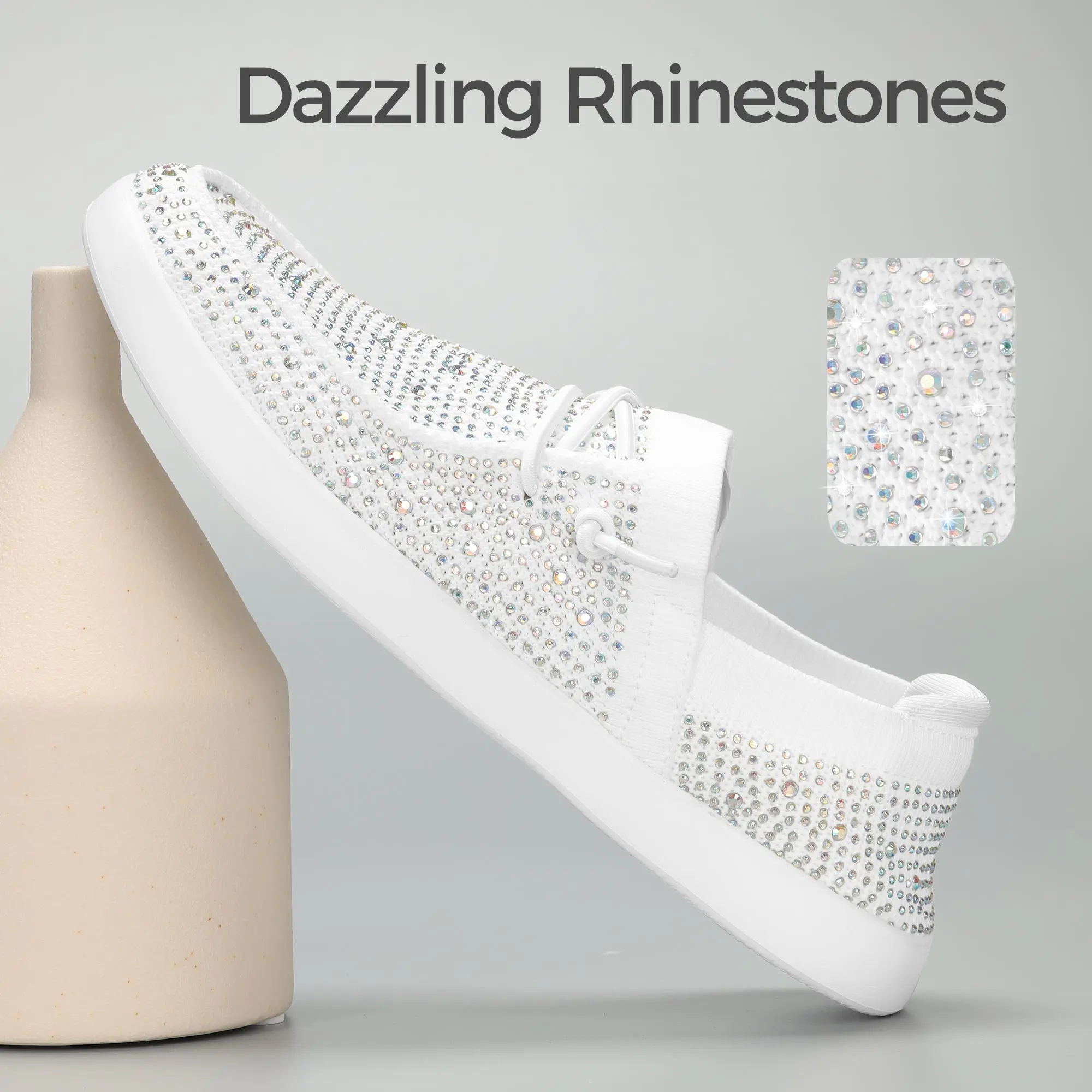 ·Fashion Design: Comfortable and breathable mesh knit upper with sparkling rhinestones, eye-catching! The ultralight outsole completes the entire silhouette. Perfect for those who love a blend of style and comfort.
